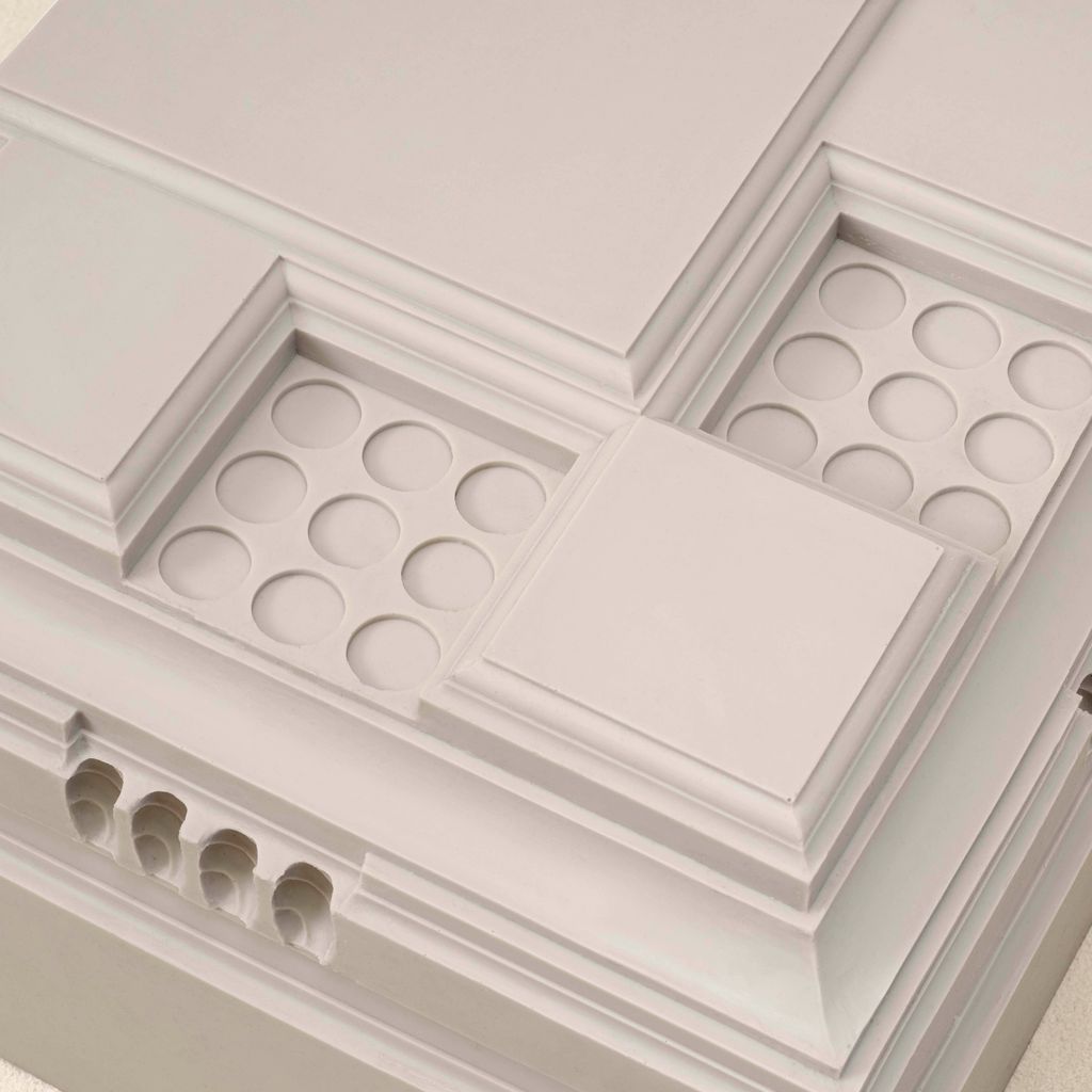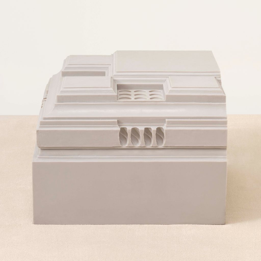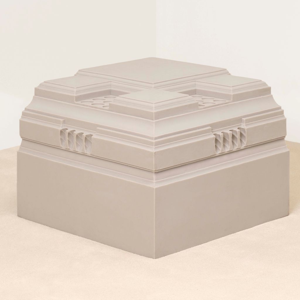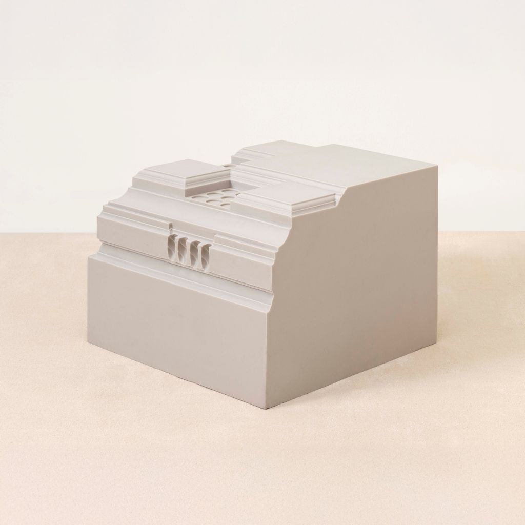 Nynke Koster is a sculptor based in The Hague. Drawing from architectural history, she casts historic ornament—Georgian moldings, classical details—into rubber and fabric, making what was once rigid pliable. For the 90210 collection, Koster draws from Kelly Wearstler's 1926 Beverly Hills home, capturing its Georgian Revival details and reimagining them in pigmented rubber. 90210 Stool stacks these borrowed geometries into functional sculpture. It's a playful chain of inspiration: Hollywood channeling European classicism, now reborn through a contemporary artist's hands.