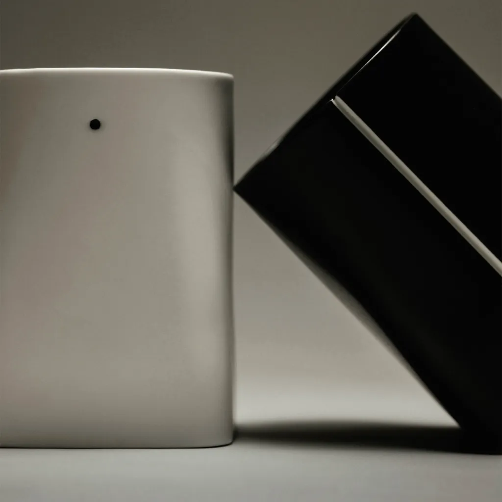 The Symmetry Cup is inscribed with two lines and two dots at its center points, symbolizing an attempt toward perfect symmetry with an inherently imperfect material. Designed with a square base and a rounded top, the cup also nods to contrasting geometry.