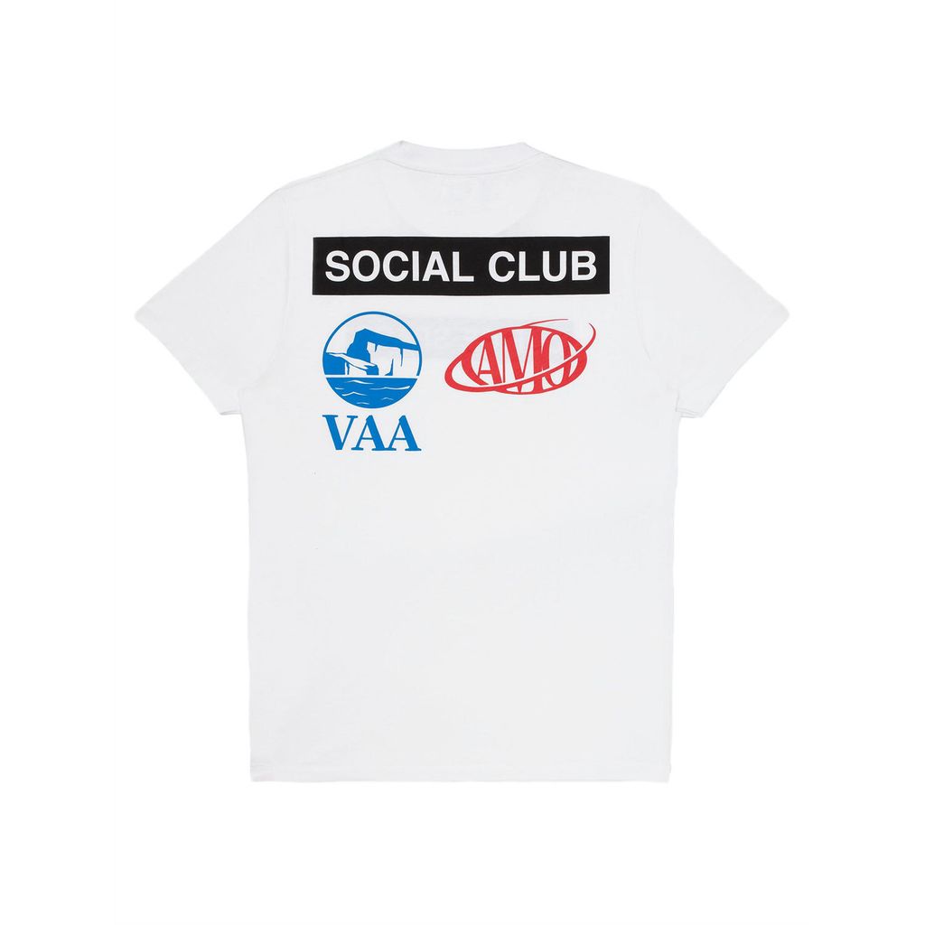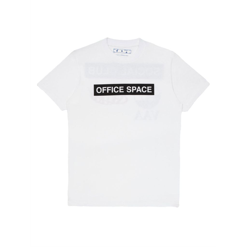Short sleeved T-Shirt in white with "OFFICE SPACE" printed at front and "SOCIAL CLUB" printed at back with graphic prints. Crewneck collar. Slim fit.