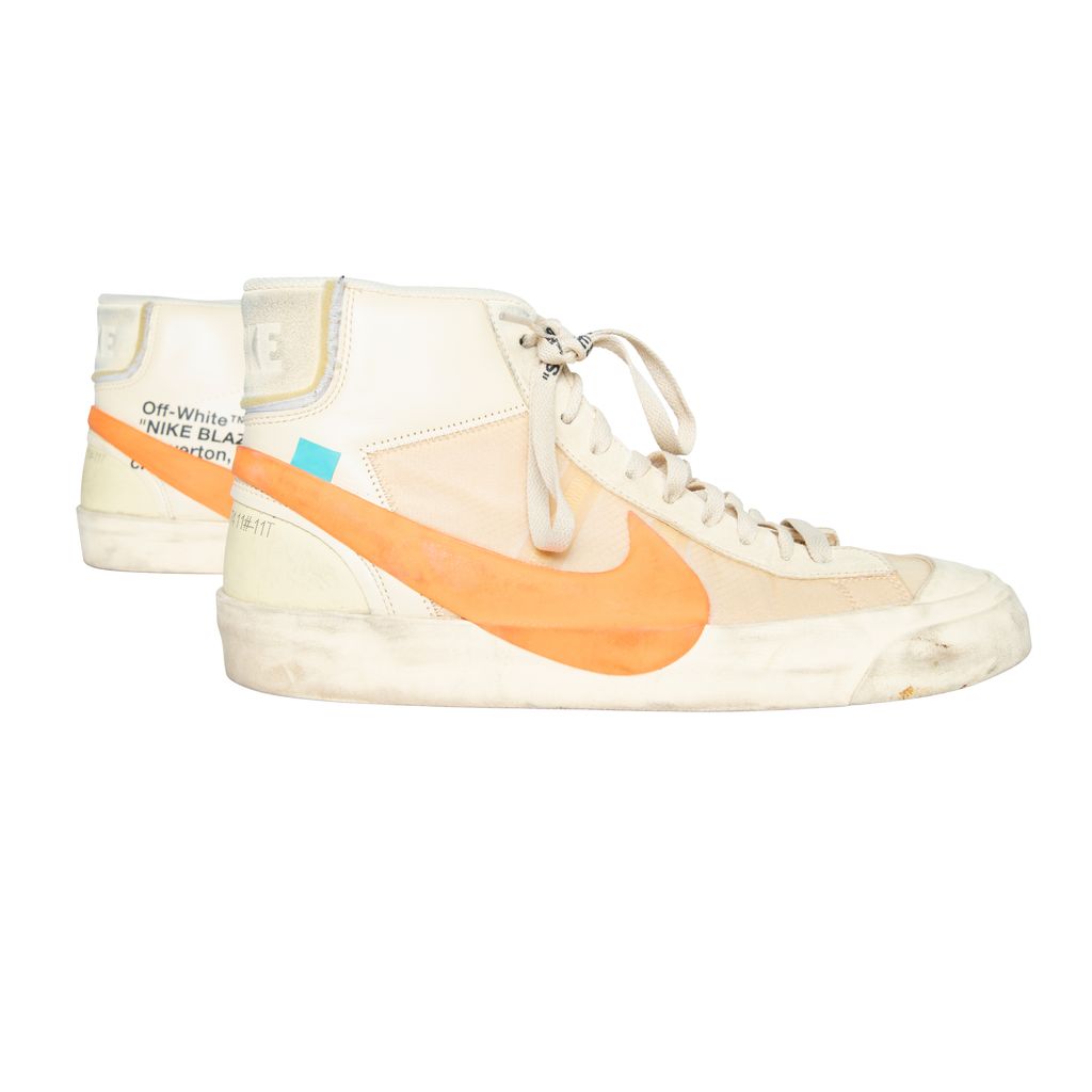 Off-White x Nike Blazer Mid "Hallows Eve" feature rubber trim, round toe, and lace up closure