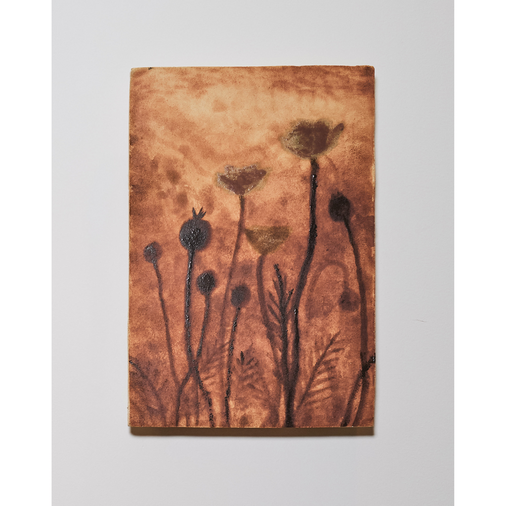 Glaze painting on stoneware and custom frame made by the artist.