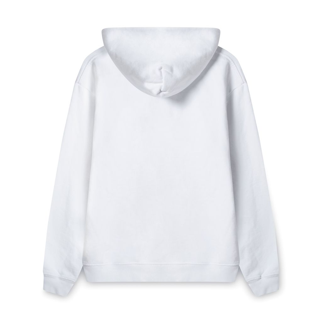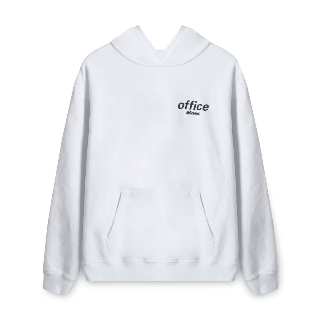 This comfy and warm white hoodie features a large pocket and the Office Miami logo on the left chest.