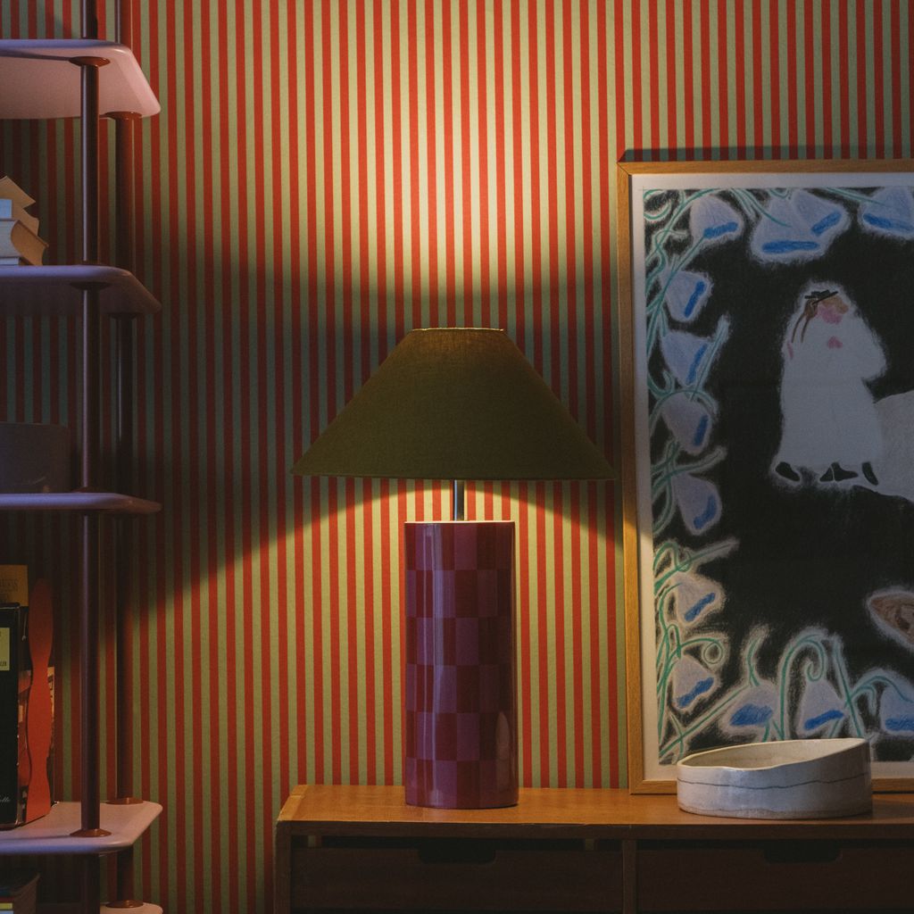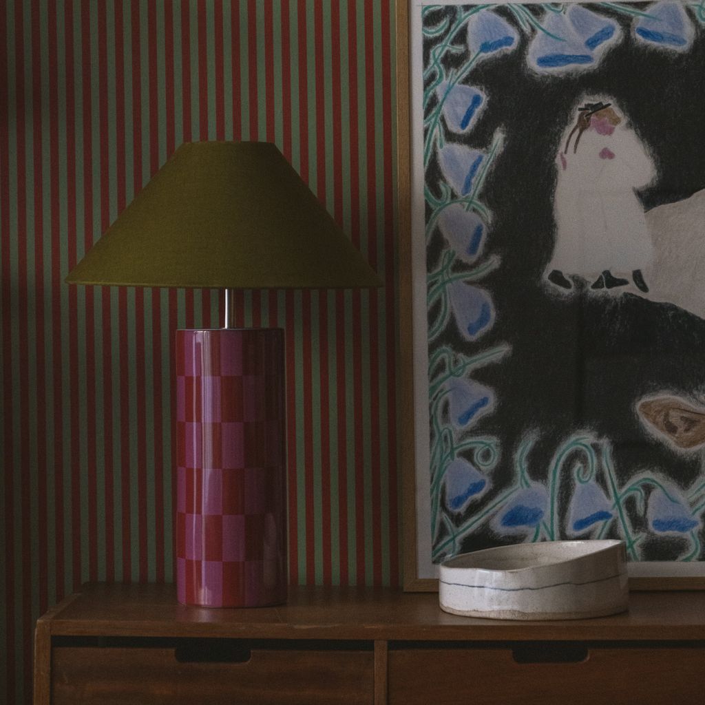 - Base : Earthenware. Renaissance Rose + Oxblood checkerboard pattern & Plein Air contrastant top. Shade : Mustard Green Cotton Twill (Haider Ackermann deadstock fabric)
