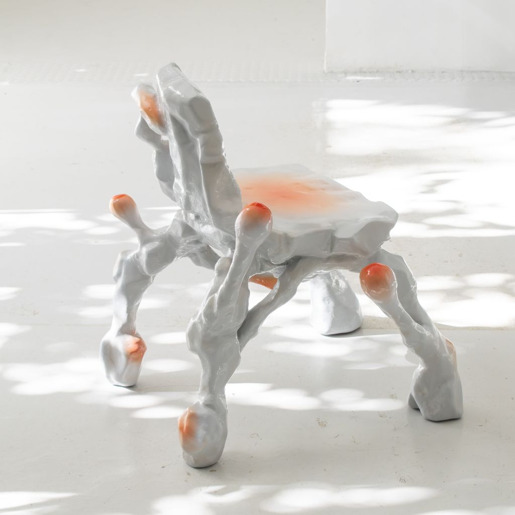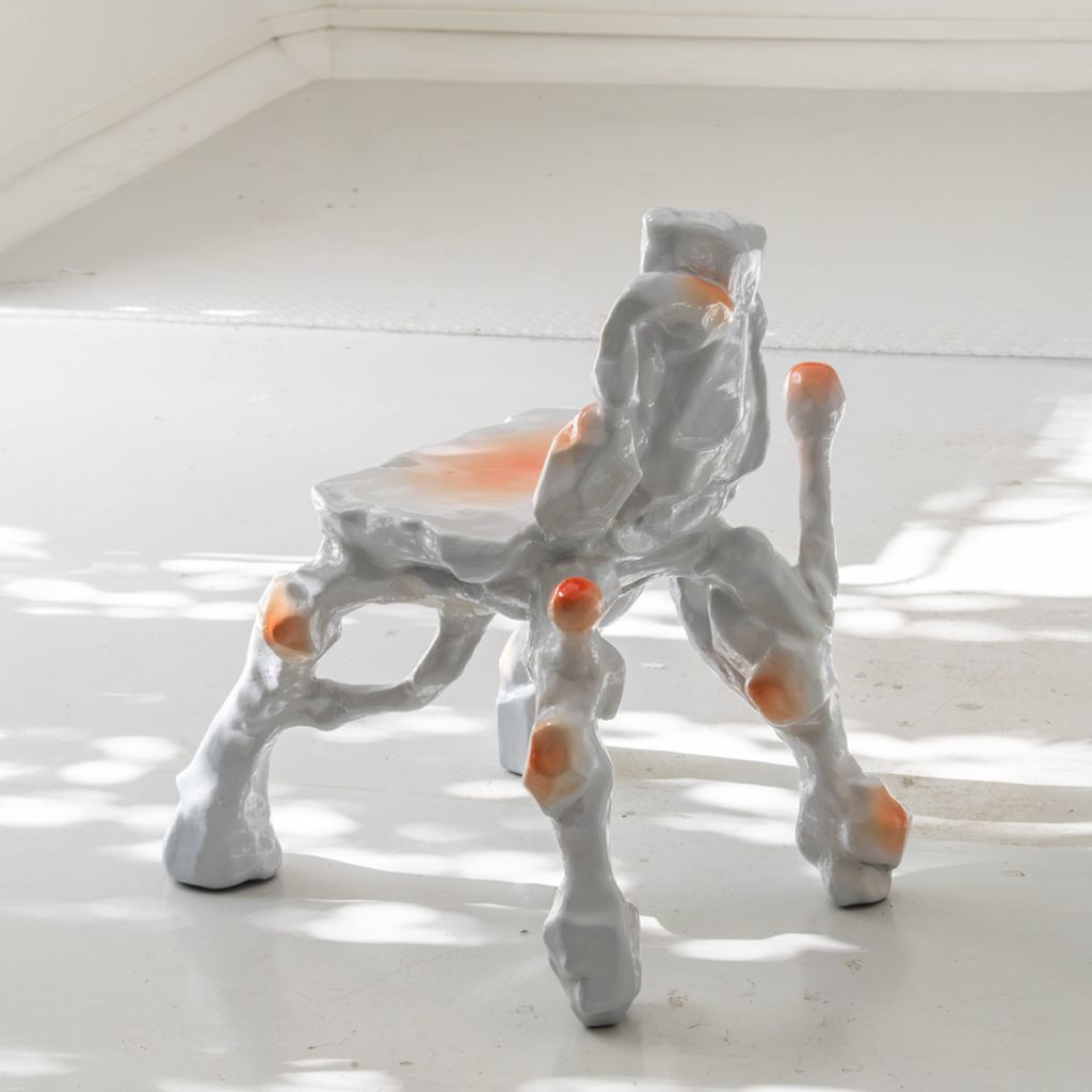The shape of the chair, intentionally unstable and sculptural, invites us to reconsider the functional object as a narrative support. It exists as much as a seat as it does as a sculpture, carrying within it a story of transformation and persistence.