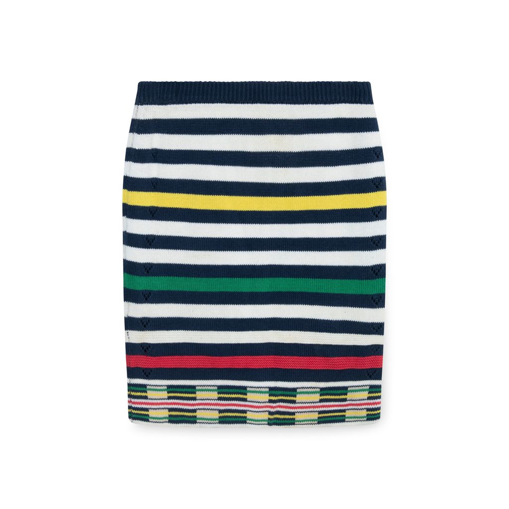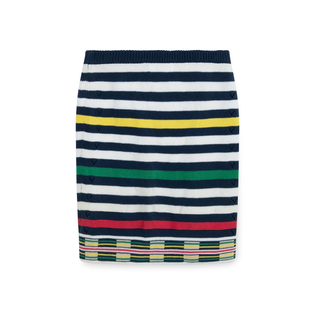Opening Ceremony Striped Knit Skirt features stretchy material, ribbed waistband, and multicolor striped knit design.