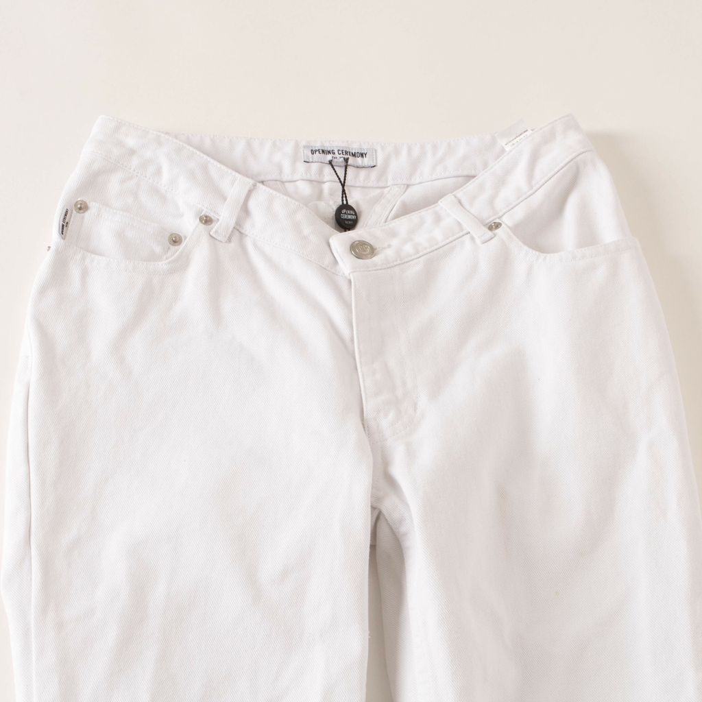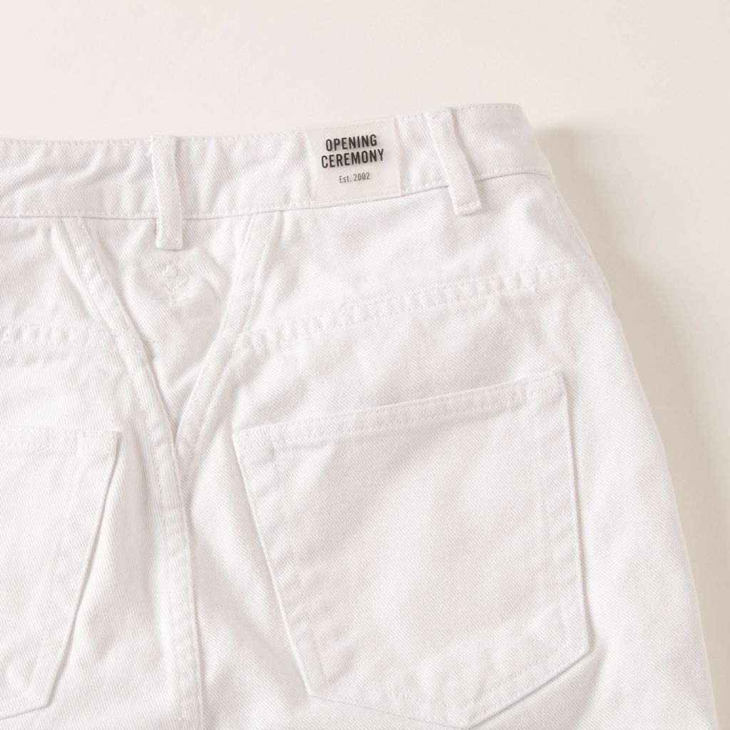 Like a reverse mullet, this jean is all party in the front and business in back. Featuring Opening Ceremony's iconic dip front waistband, it's a modern take on a classic high rise jean.