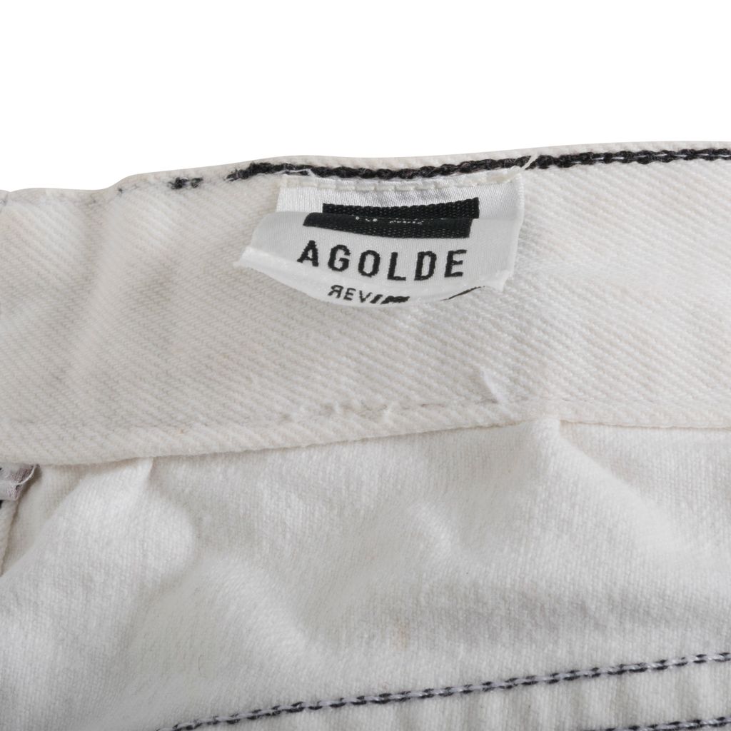 Opening Ceremony explores a new denim frontier with AGOLDE, a brand envisioned by industry giant Jerome Dahan to create an exclusive collection of workwear for girls. These jeans feature a hidden button-fly closure, black contrast stitch detailing, and functional front/back pockets. These jeans have a distressed hemline and have a cropped silhouette. Gently worn, marks as pictured.