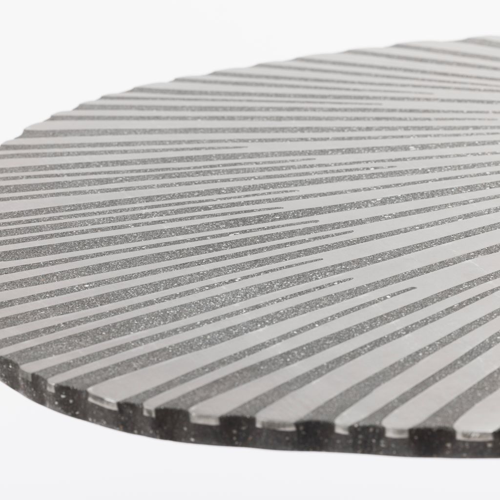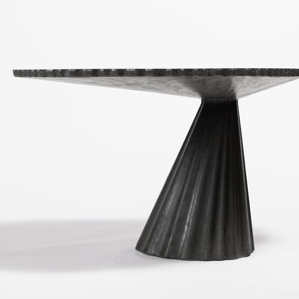 This occasional table weighs 200 lbs. Using 316 alloy stainless steel and high performance concrete, this piece is suitable indoors or outdoors in any climate.