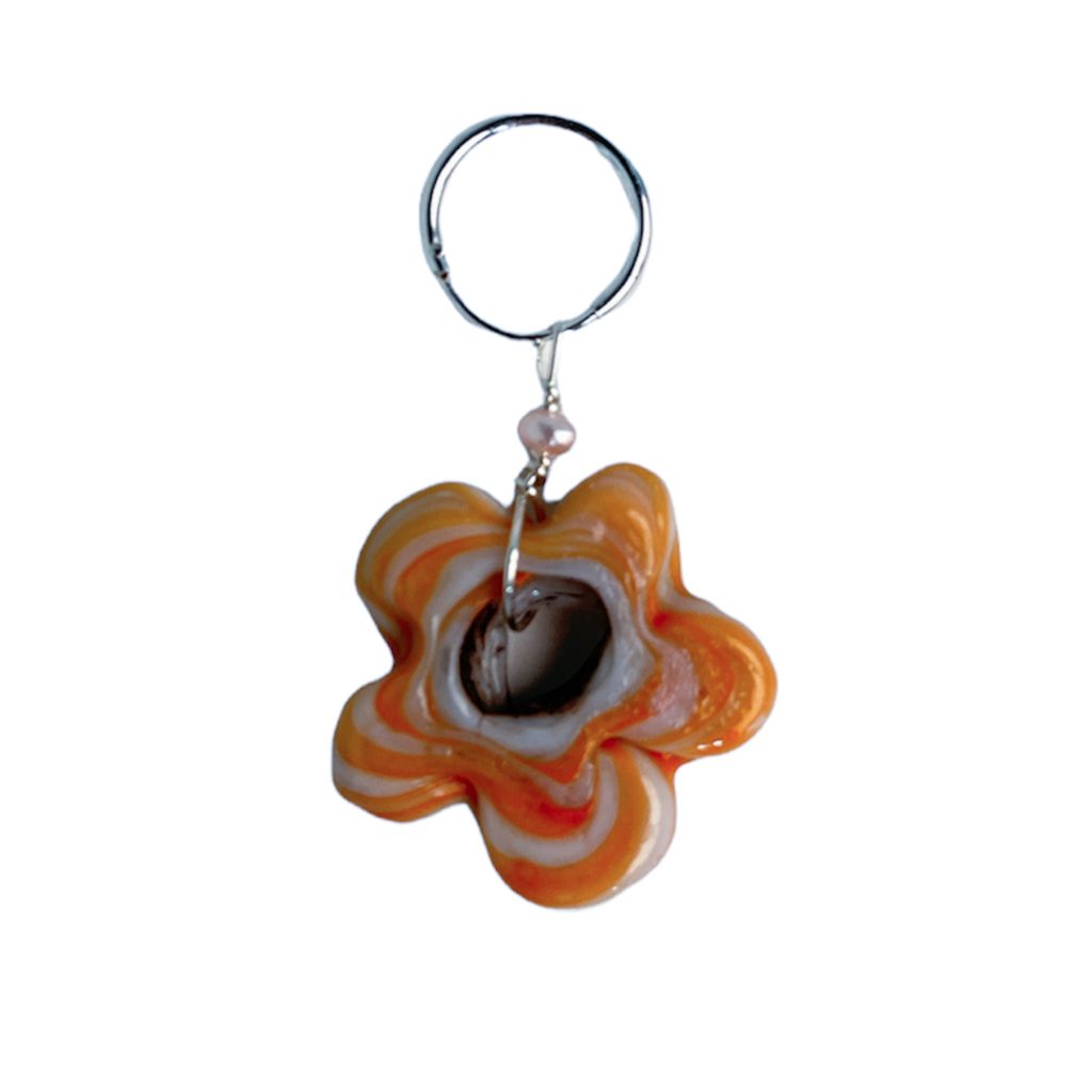 Orange Creamcicle features freshwater pearls and handblown glass flower on 925 silver hardware.