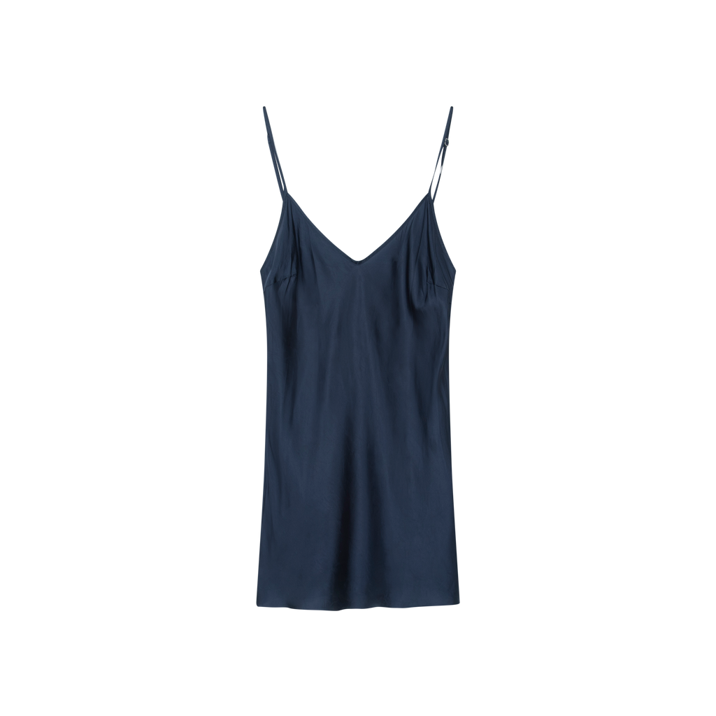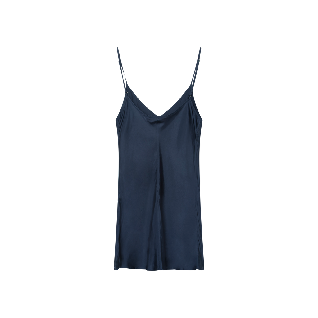 Organic by John Patrick Navy Blue Tank features slip on design, V-neck, and spaghetti straps.