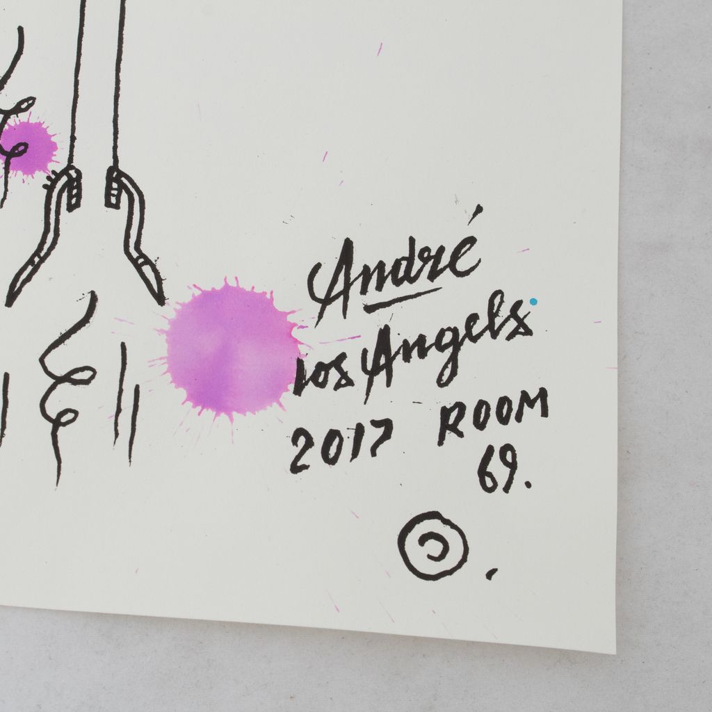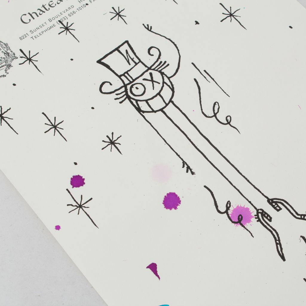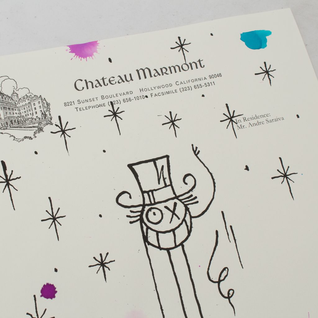 Drawing done in ink on Chateau Marmont stationery during André's stay, series of 100 original and signed.