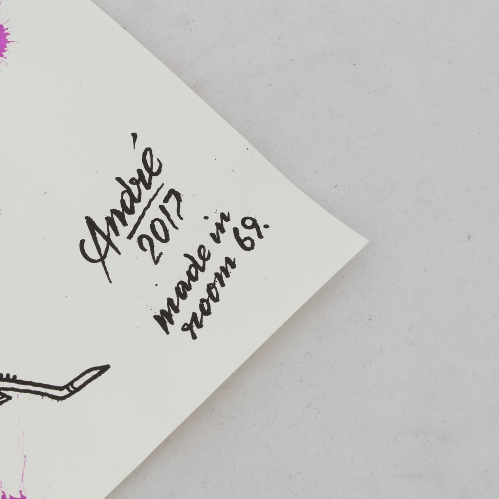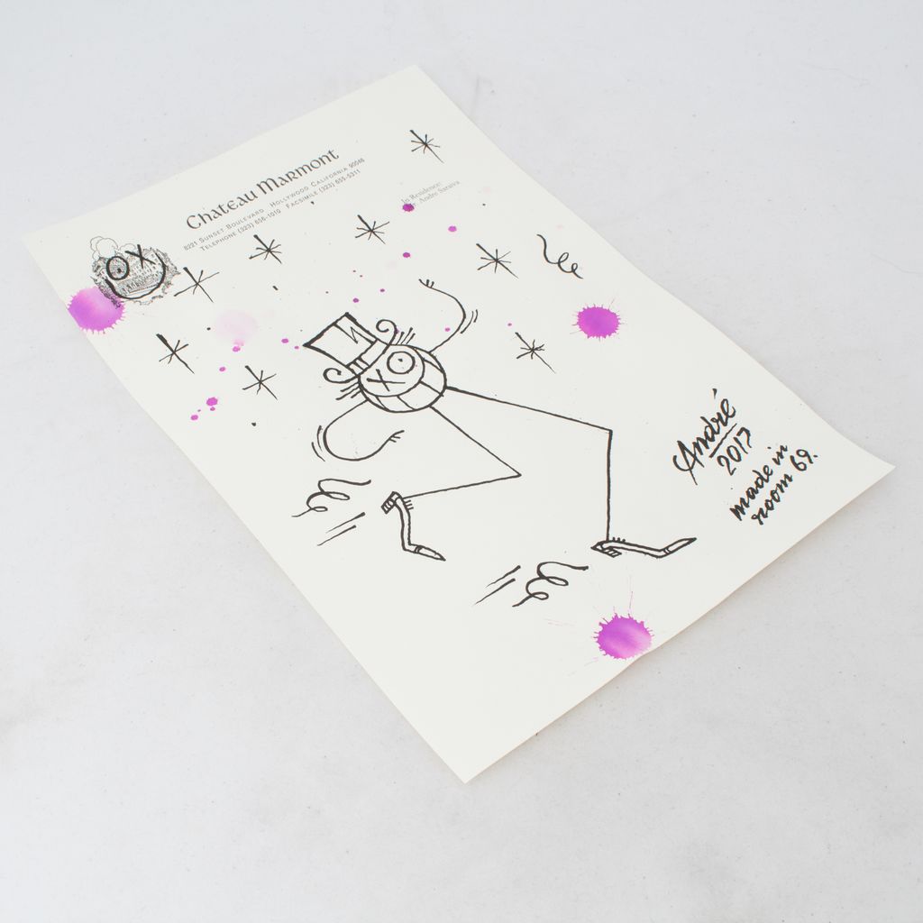 Drawing done in ink on Chateau Marmont stationery during André's stay, series of 100 original and signed.