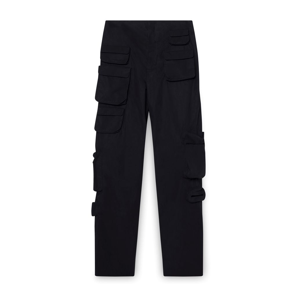 Orseund Iris Black Pocket Pant ECRU features 10 functional pockets, elongated hem opening, and straight leg cut.