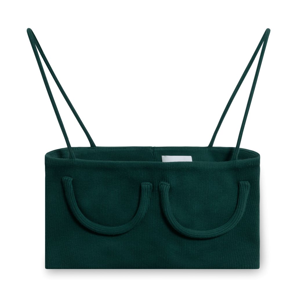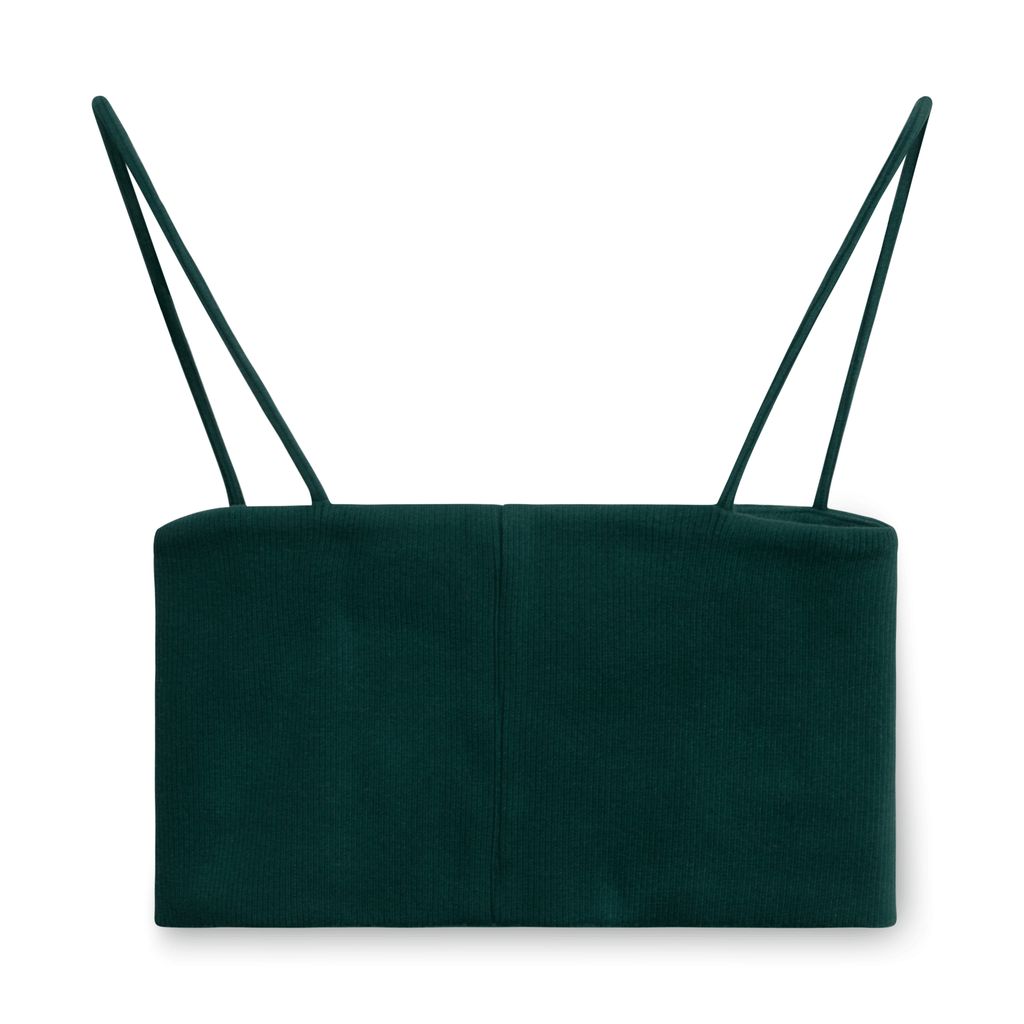 This ribbed double layer knit tank from Orseund Iris features rolled spaghetti straps, tonal underwire decorative detail on front. Pre-owned. In excellent condition.