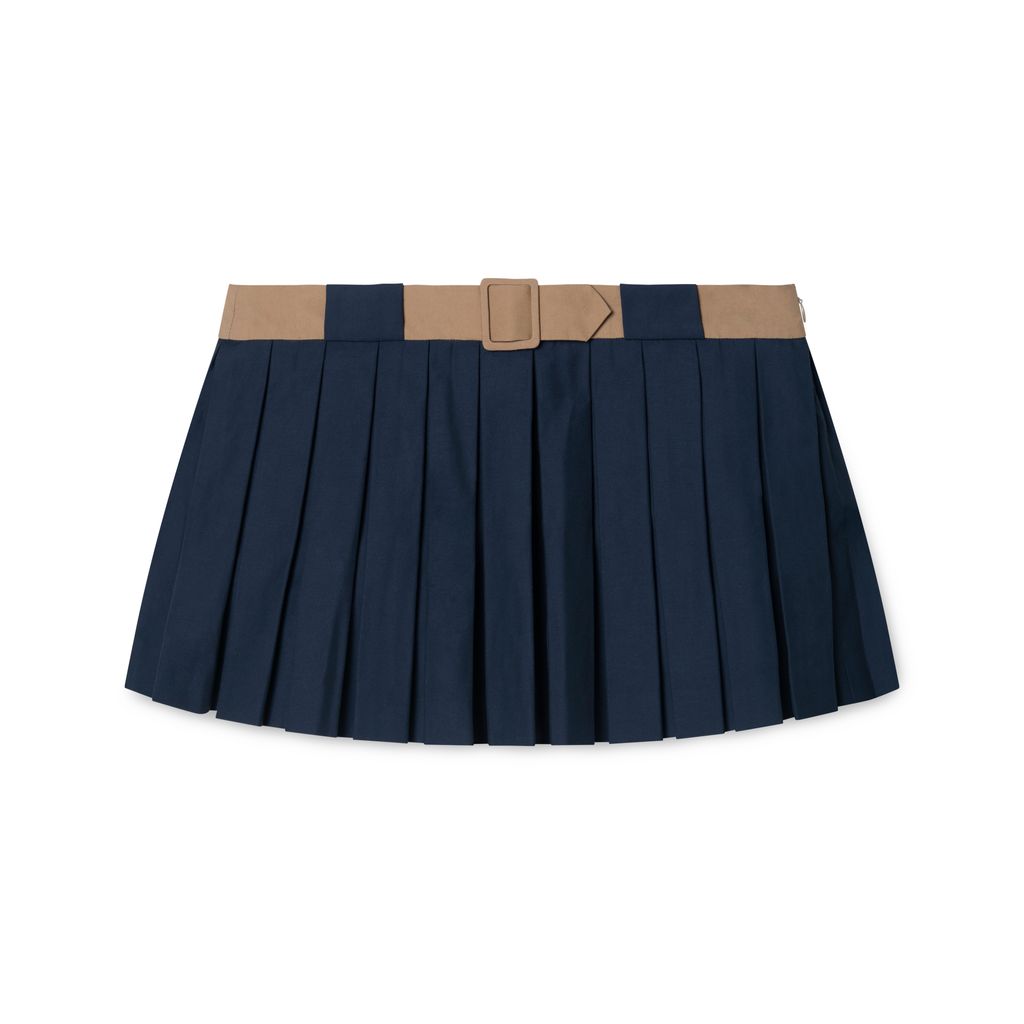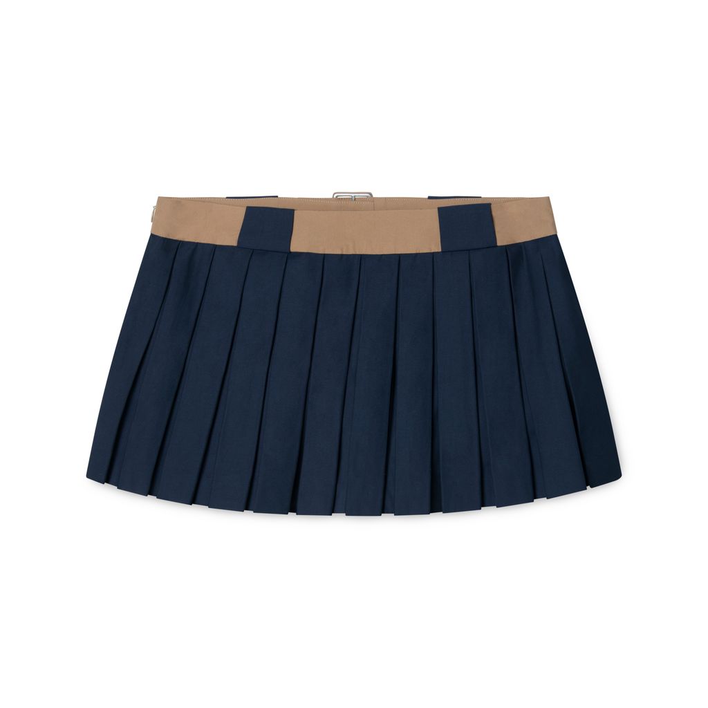 Pleats at the skirt stay crips and fresh. The belt with the pop of color hits at the hips. A hidden back zipper. This micro mini length grazes your upper thigh