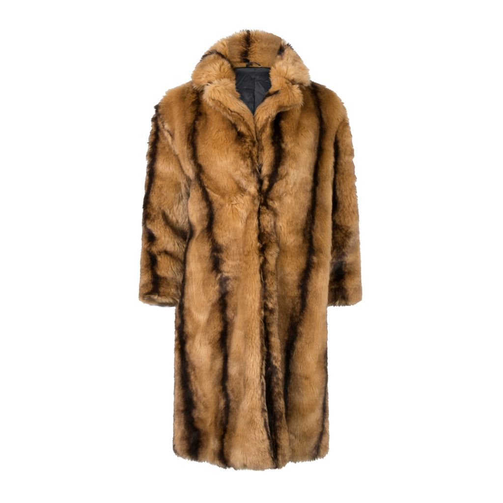 This soft faux fur long coat has an open lapel collar, two front eye-hook closures, inner lining, and two side pockets. Gently worn, in excellent condition. Pair with your favorite dark denim and heeled boots. This coat is from & Other Stories Paris Atelier.