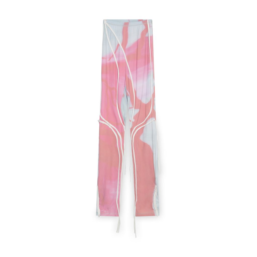 Ottolinger Pink Strappy Pants features elasticated waistband, white piped strappy detailing, hidden side zipper on waistband and bottom of legs.
