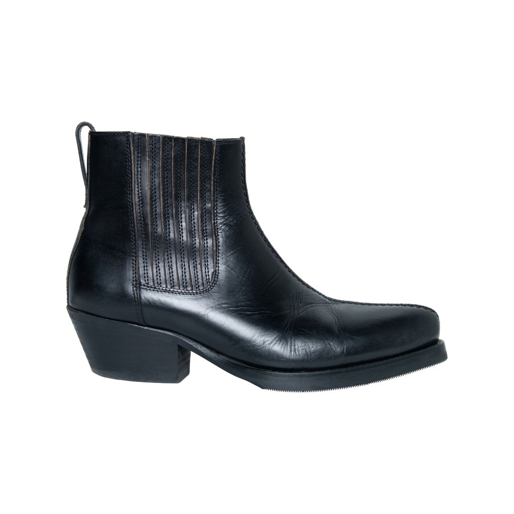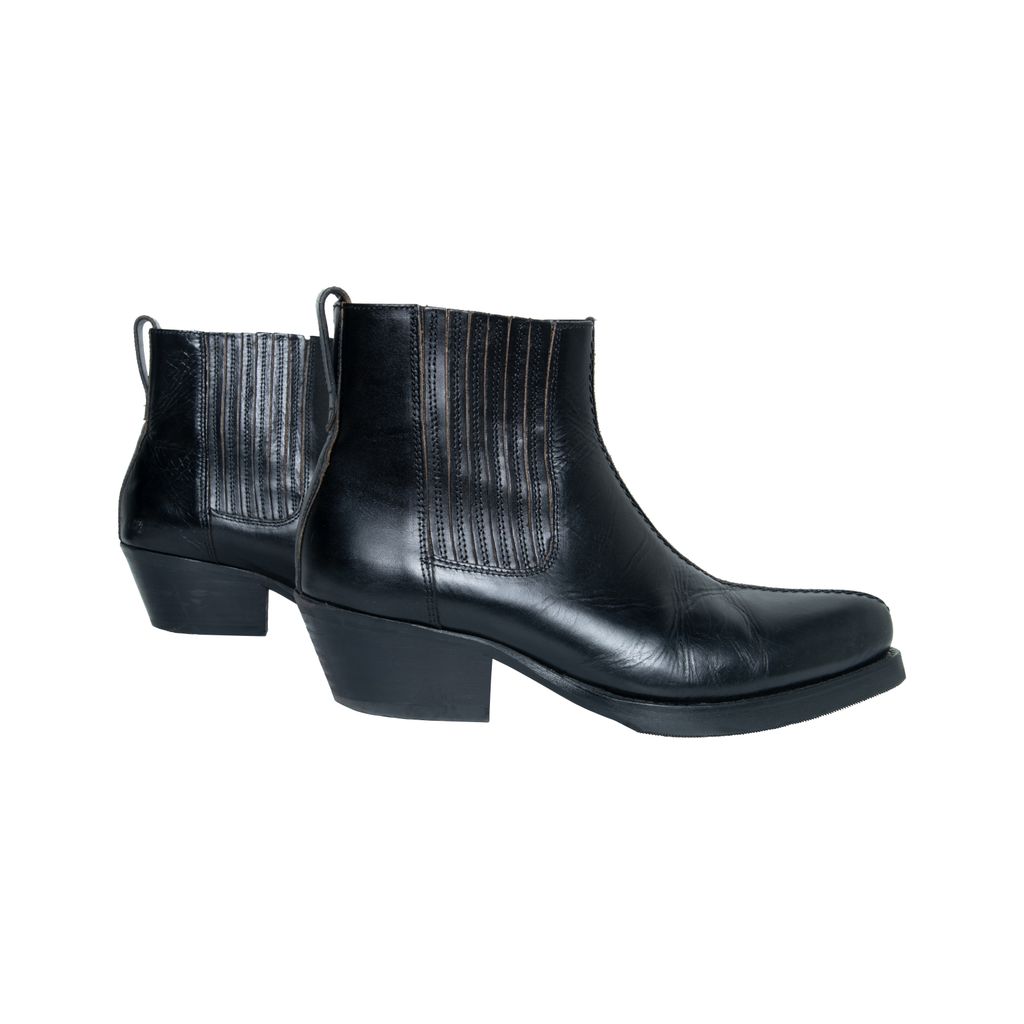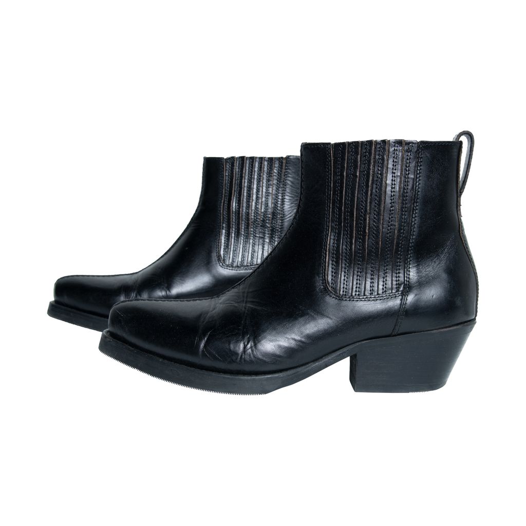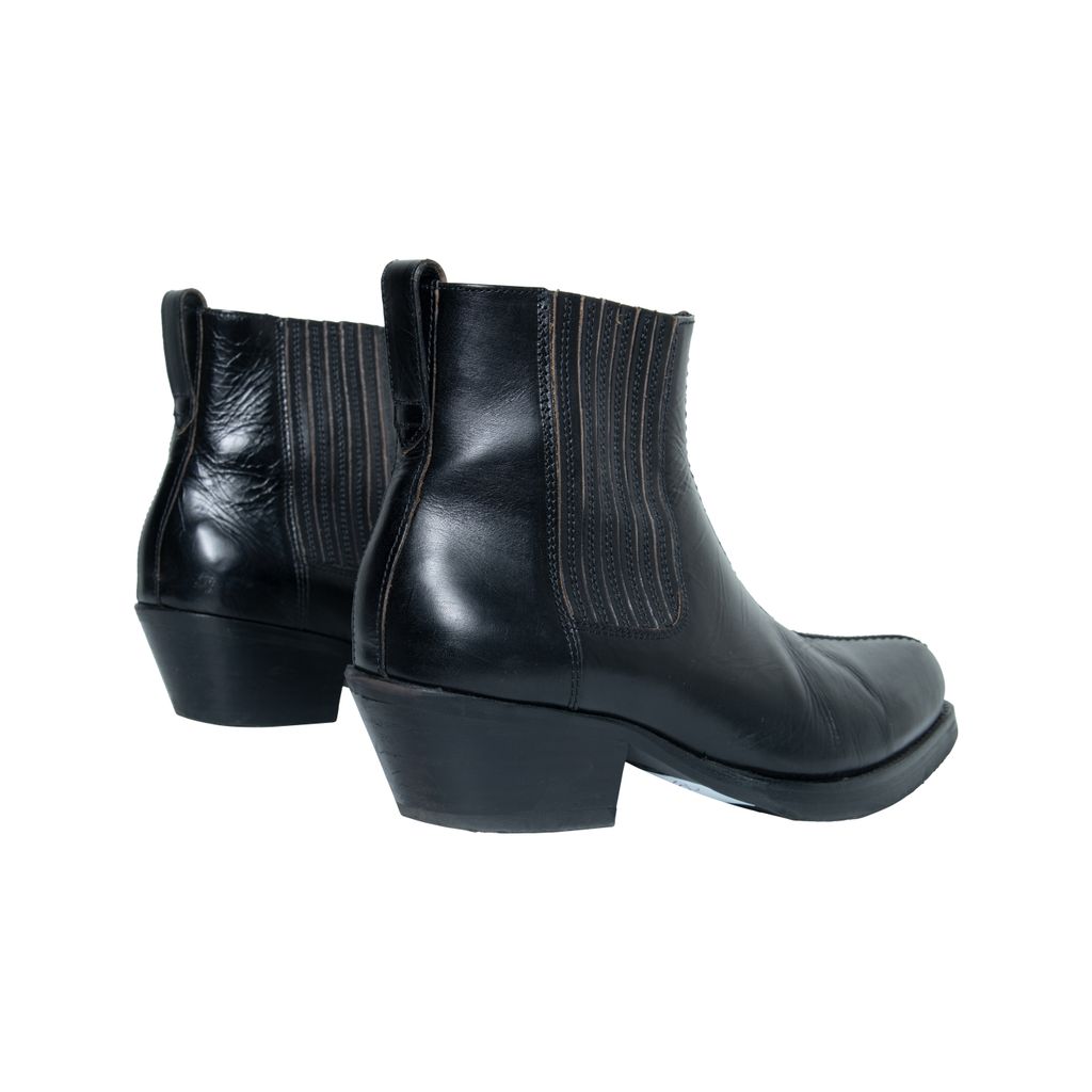 Our Legacy Black Cowboy Booties features western heel and pointed toe.