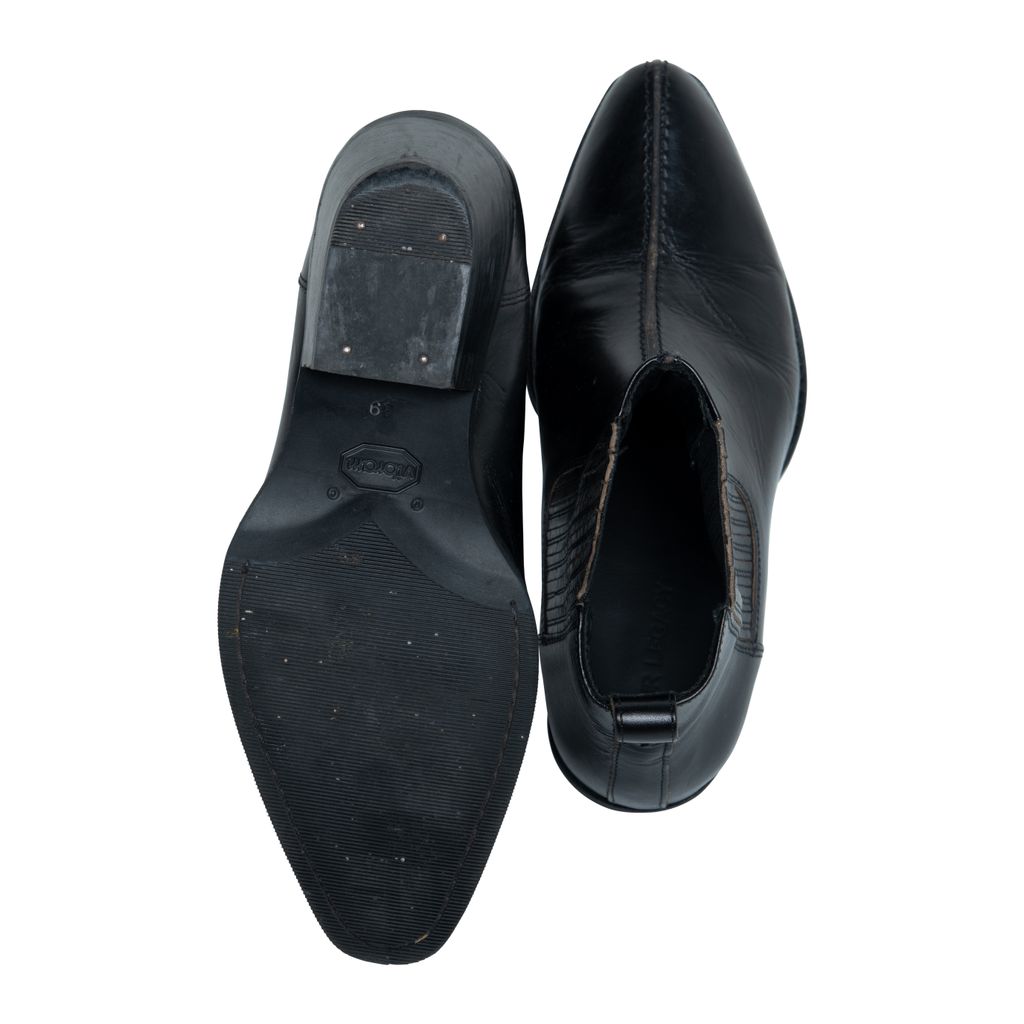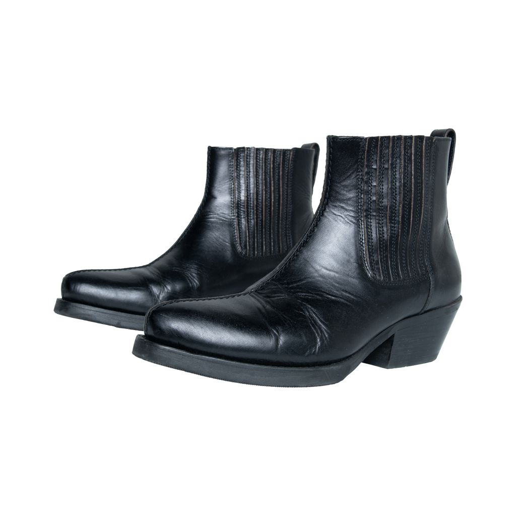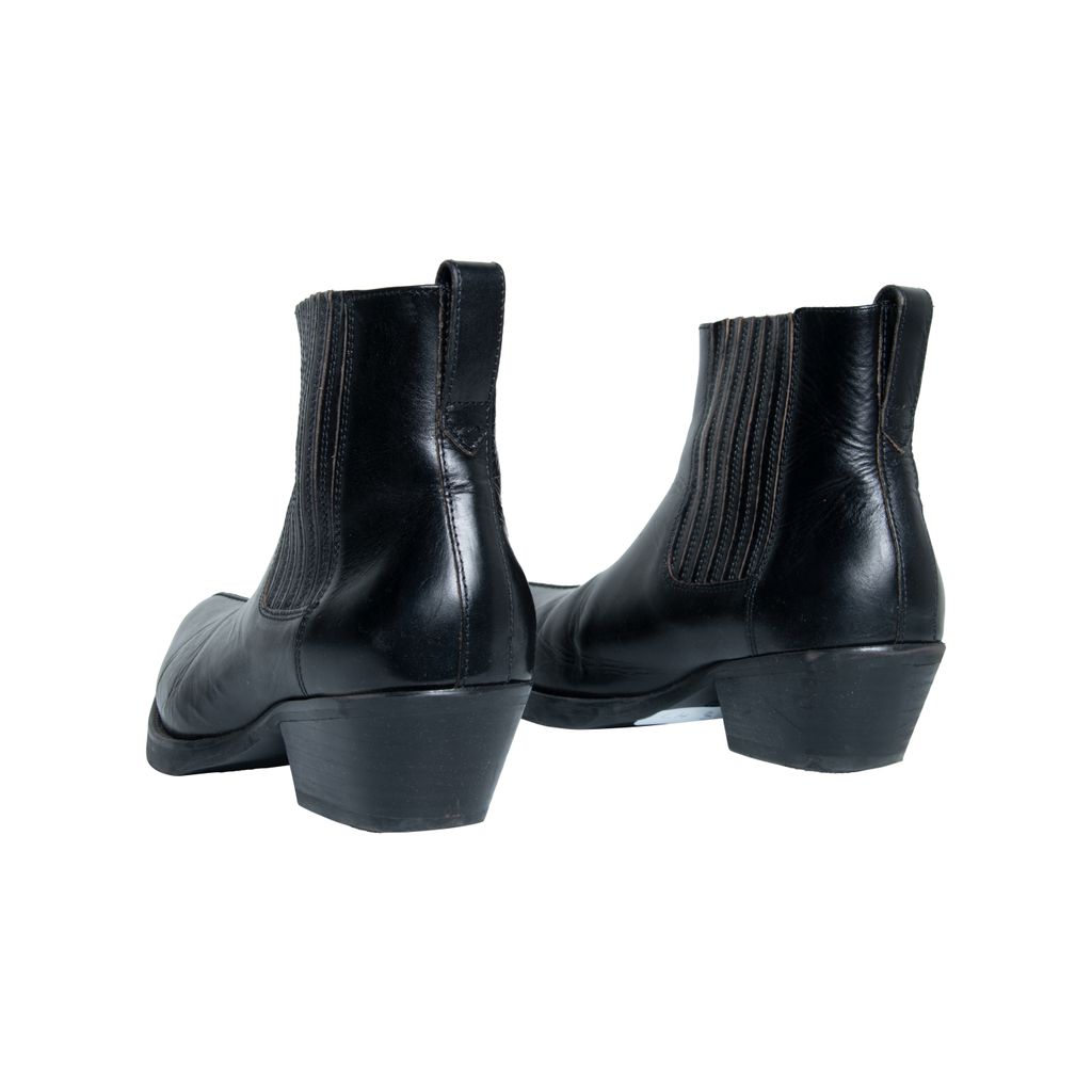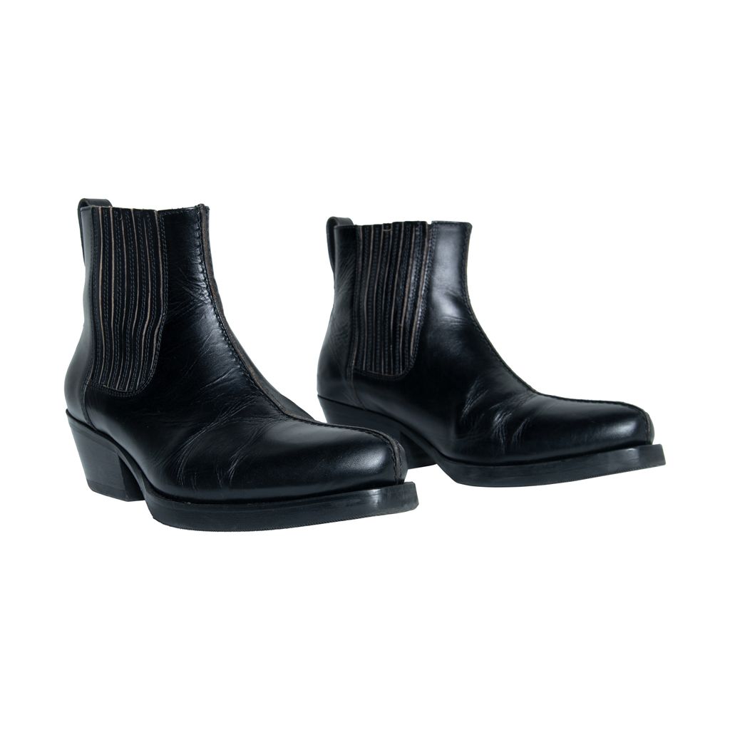 Our Legacy Black Cowboy Booties features western heel and pointed toe.