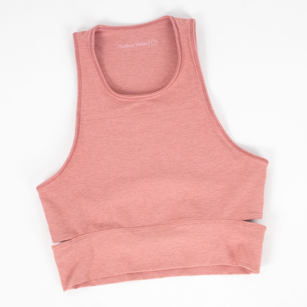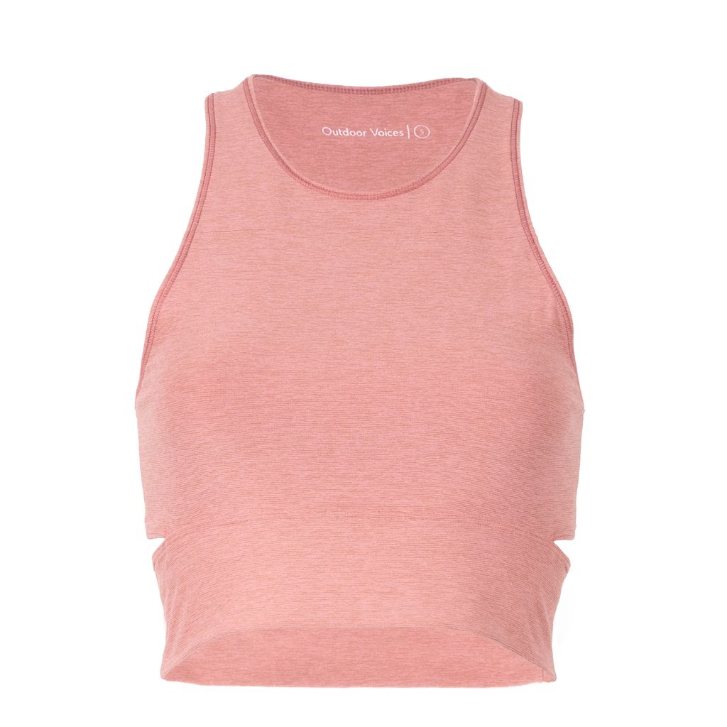 With its super stretch fabric and cutout detail, this bra top from Outdoor Voices has your back. Literally. Features four way stretch fabrication, racerback style top, and cutout back with strap bottom.