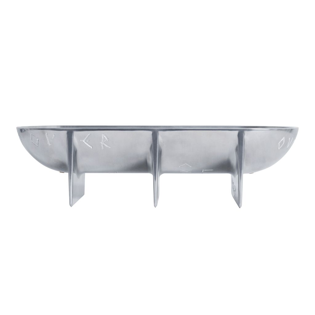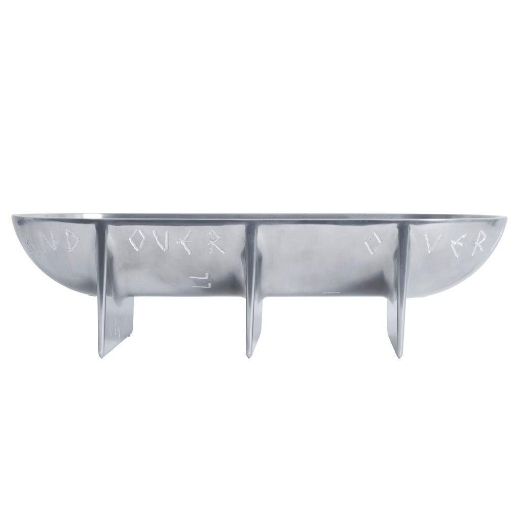 The die cast aluminum Standing Bowl is elevated off the table surface by its architecturally inspired planar legs. Each bowl is polished aluminum that is intentionally left unfinished so that it will naturally develop a patina with time and touch.