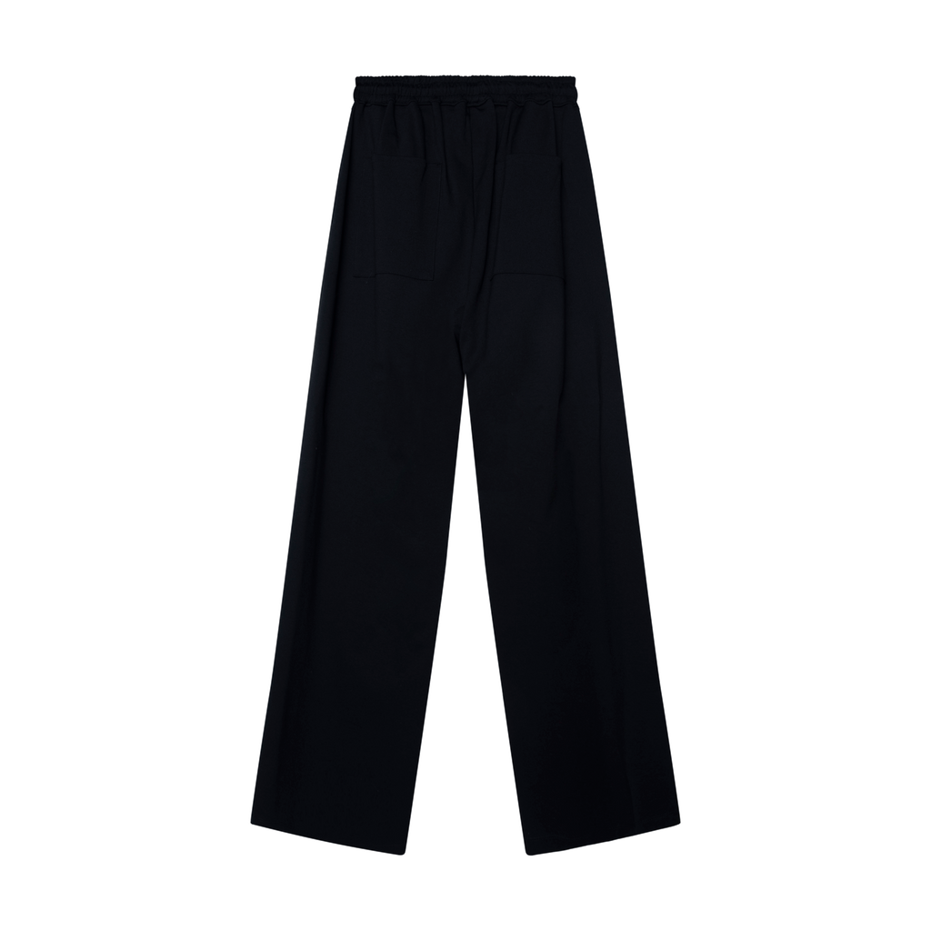 Oversized Lounge Pant in Black features 2 pocket styling at front, patch style pocket at back, pleats at front waistband, and drawstring at elasticized waistband featuring logo on nickel aglets.