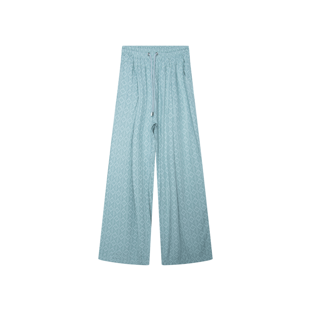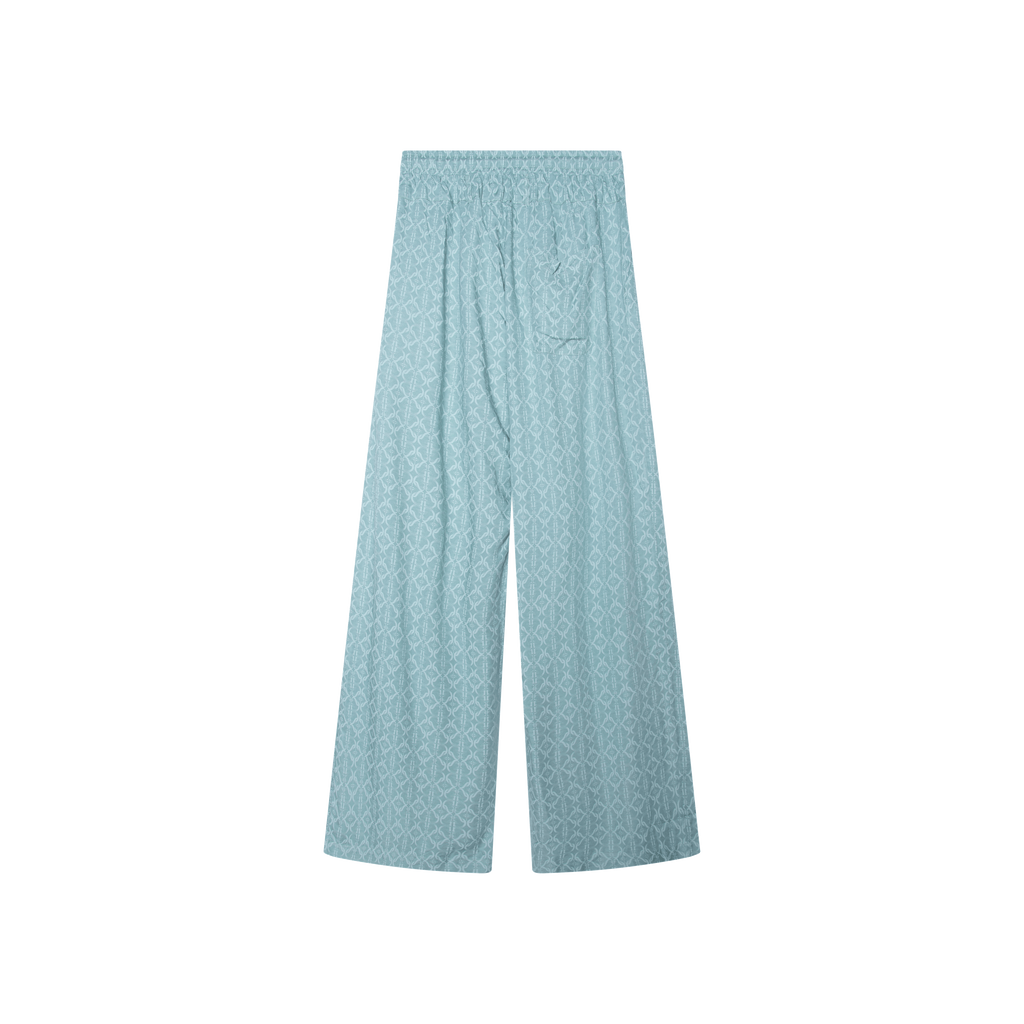 Oversized Viscose Pant in Mint features pleats at front waistband, 2 pocket styling, patch style pocket at back, double waistband featuring belt loops, and drawstring at elasticized waistband featuring logo on nickel aglets.