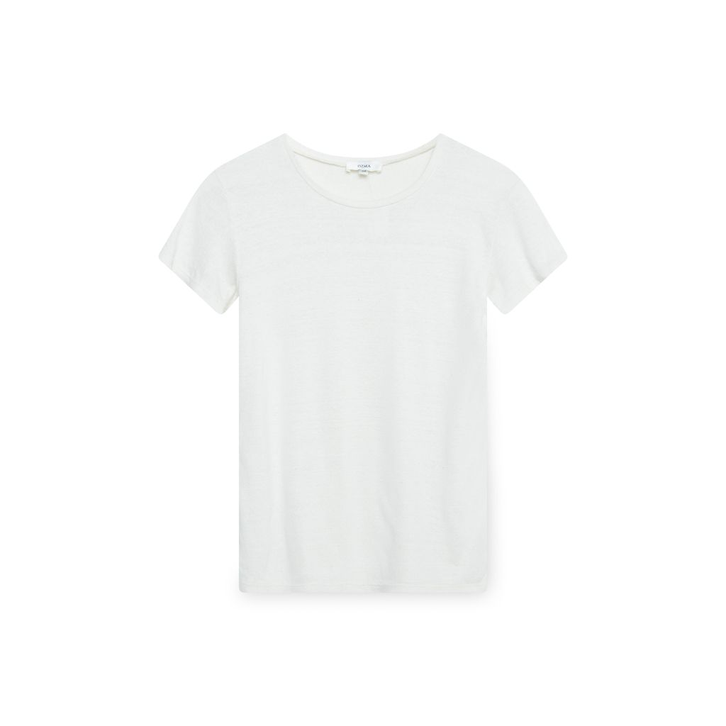 OZMA Regen Silk Noil Jersey Tee in Natural features raw silk, scoop neck, and relaxed fit.