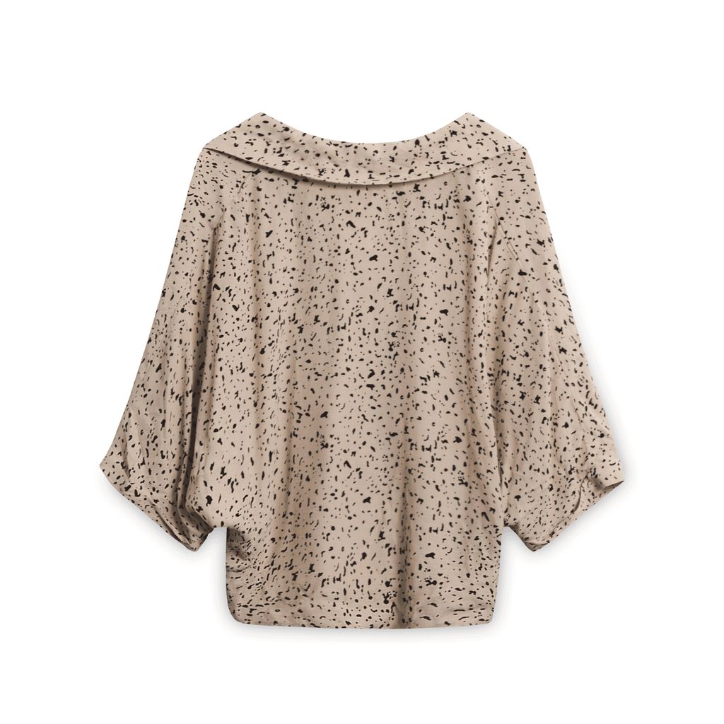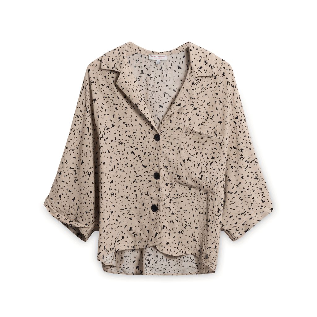 This tan and black speckled button-down from Pacific Republic has a uniquely California-meets-Flintstones feel. Its unstructured collar and wide-set buttons complement the shirt's relaxed shape.