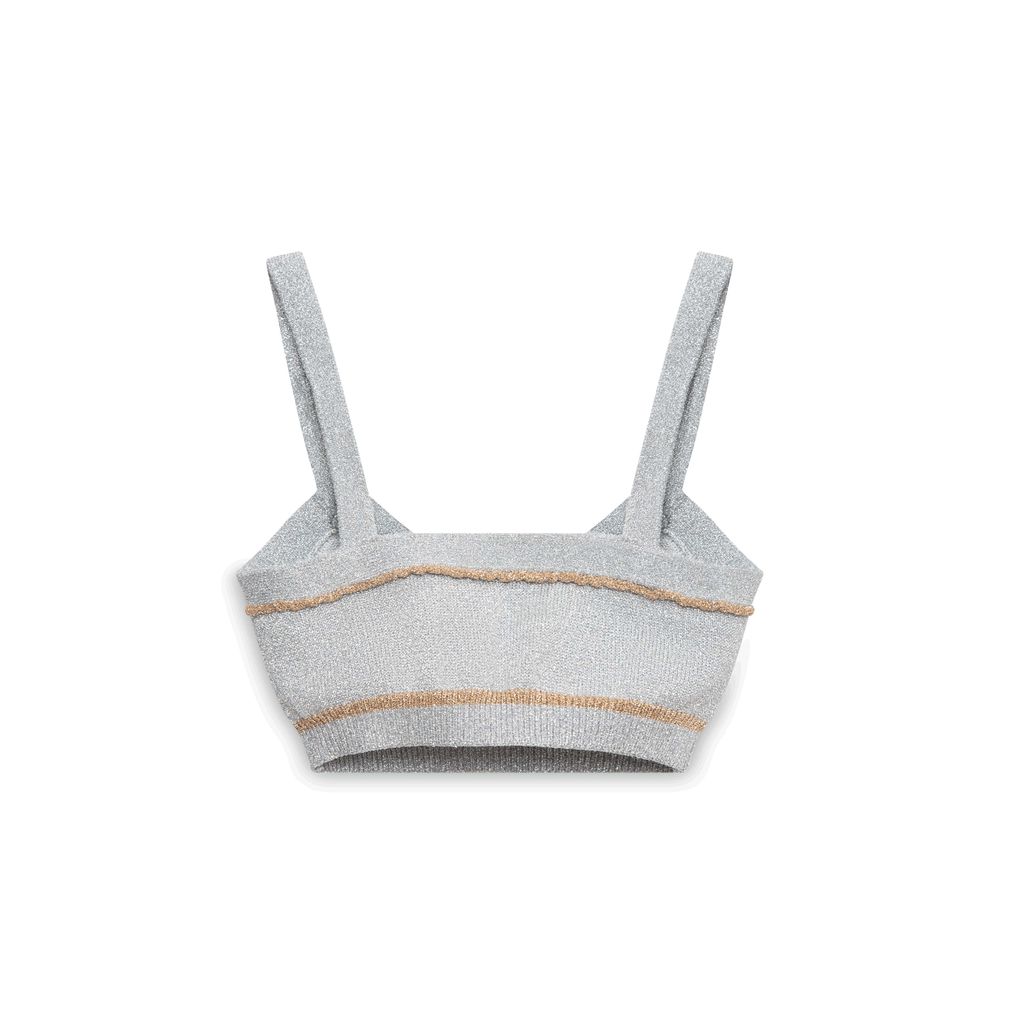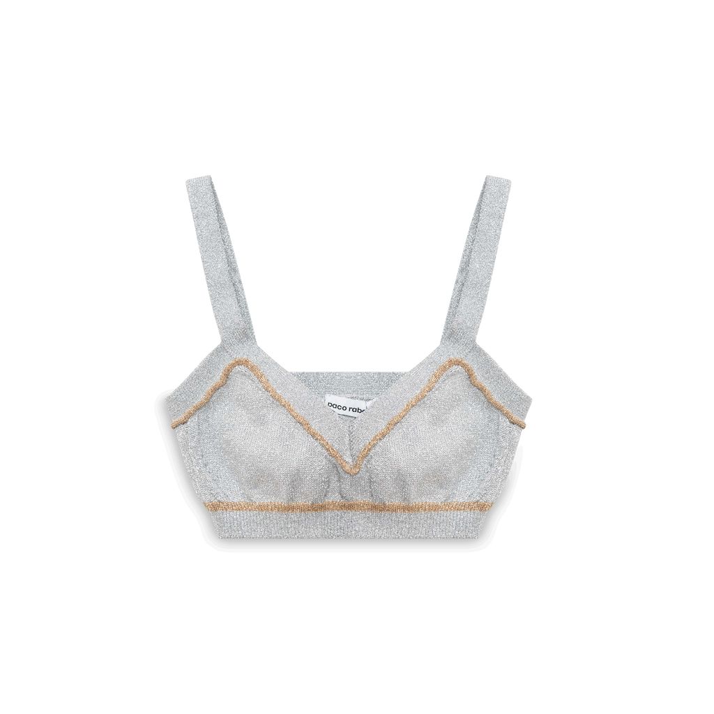 Paco Rabanne Metallic Set features triangle bralette top and side slit skirt