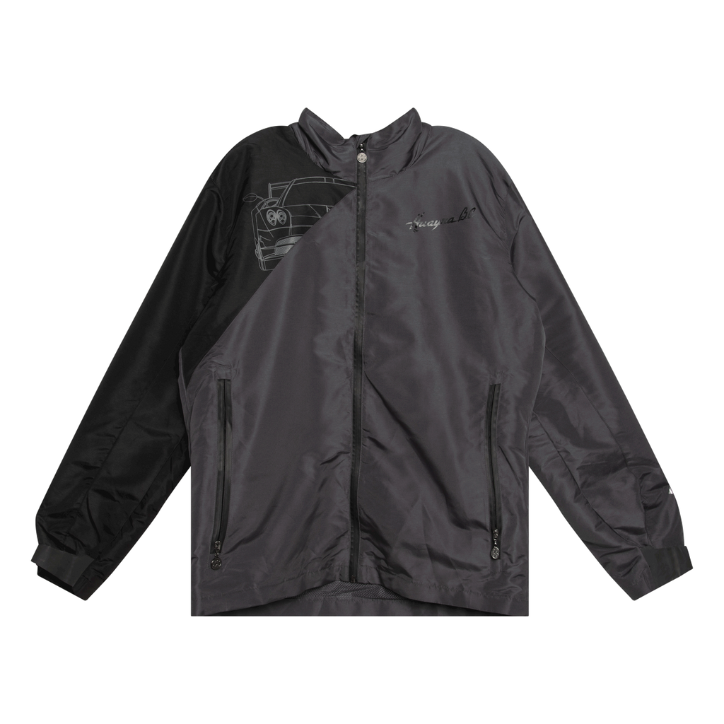Pagani 'Huayra BC' Grey Windbreaker features front zip closure, 2 zippered side pockets, and detachable hood.