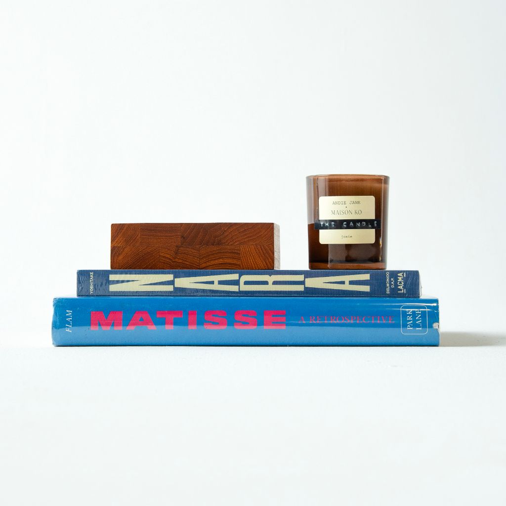 Paint Me a Picture features Vintage '1988 Matisse: A Retrospective' Book edited by Jack Flam Park Lane, New 'Yoshitomo Nara' book, Vintage Wooden Catchall Dish from Denmark, and Andie Jane x Maison Ko 'josie' Candle with notes of iris, bergamot, and vanilla.
