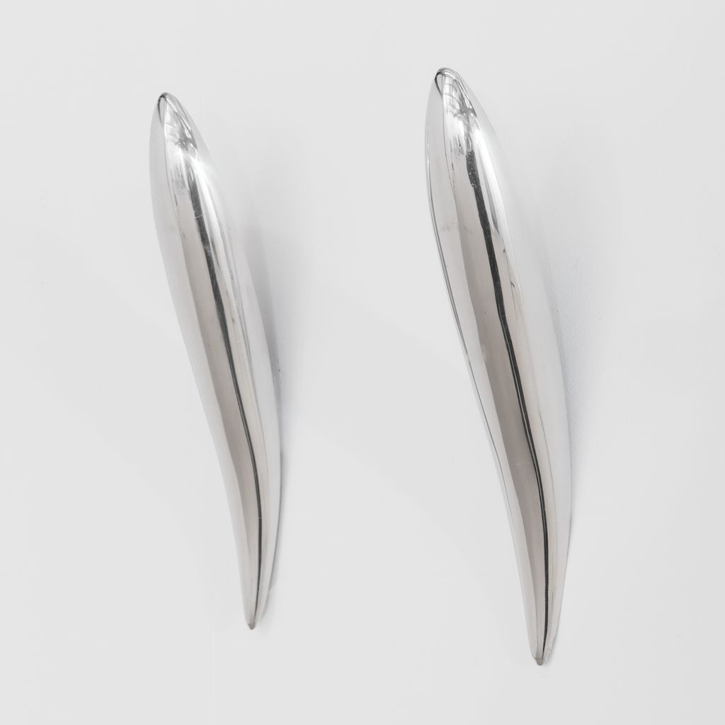 Pair of 1980s undulating teardrop sconces in polished chromed aluminium, sourced from France. To be hard-wired by a registered electrician.