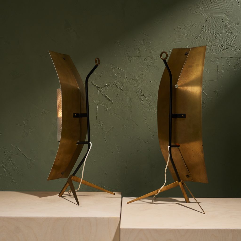 Condition: These table lamps show some small age related user marks visible to the metal and brass. The brass shows a subtle patina which can be seen on the images.