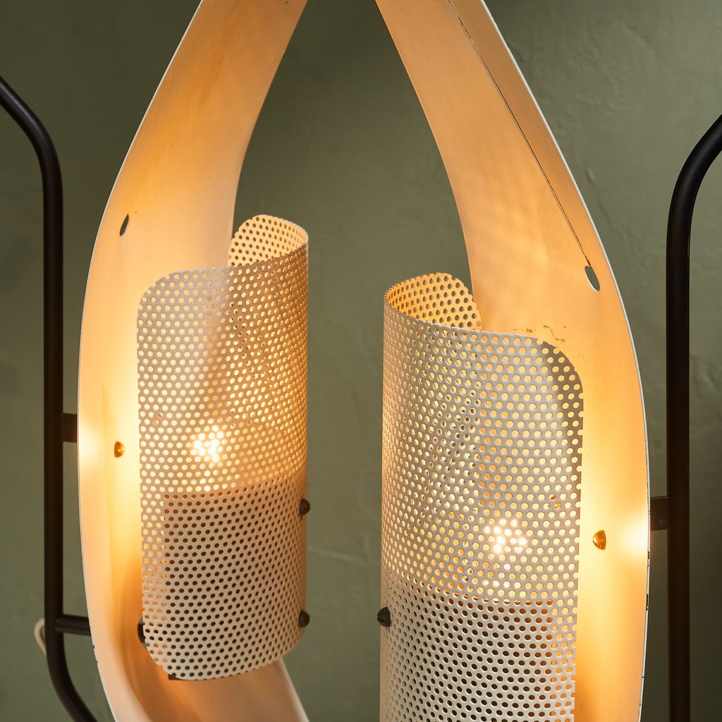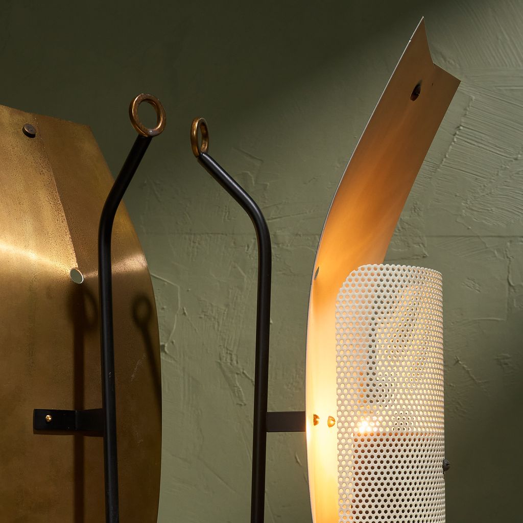 Pair of Sculptural Table/Wall Lamps In Brass and Perforated Metal by Gastone Colliva, Italy, 1950s
