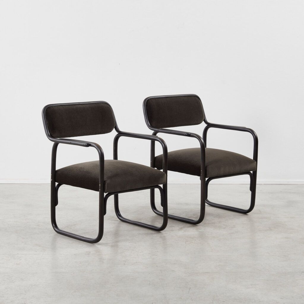 With their Bauhaus form this pair of ‘A 60 F’ bentwood armchairs by Thonet Mundus epitomise avant-garde design. Their arms and legs connect to form a soft rectangular form, giving the chair a gentle yet stable rock.