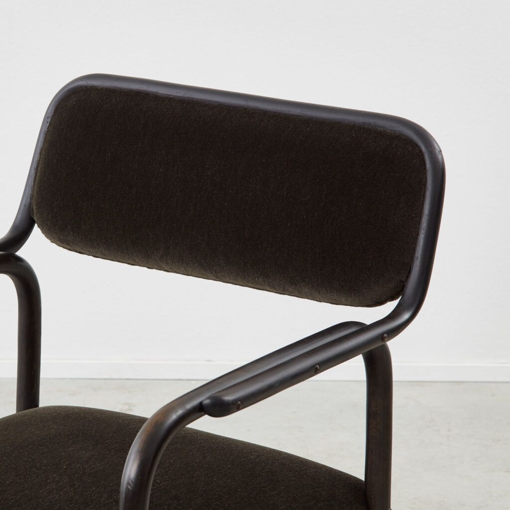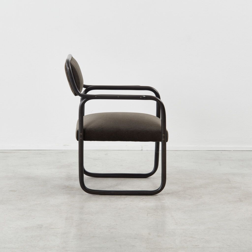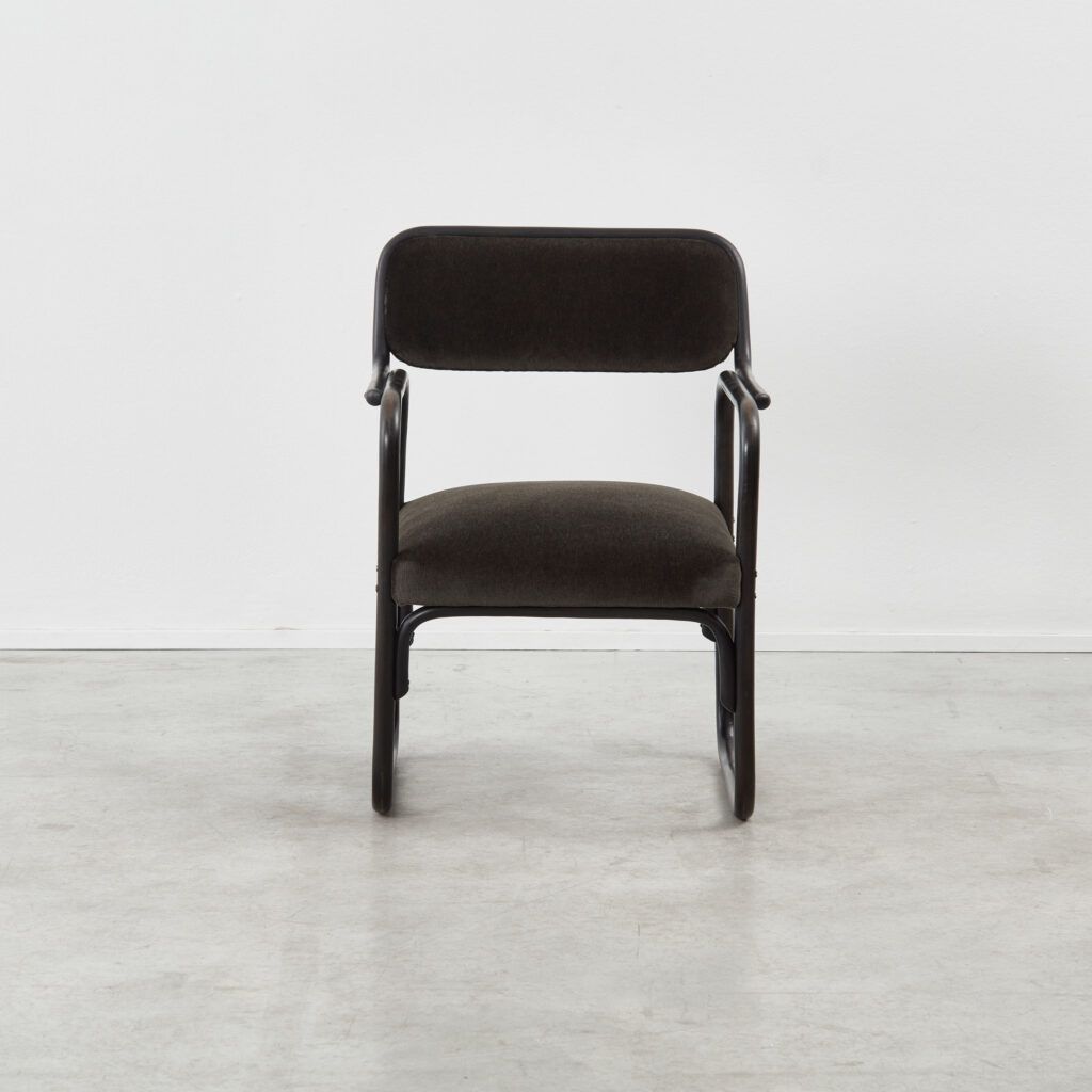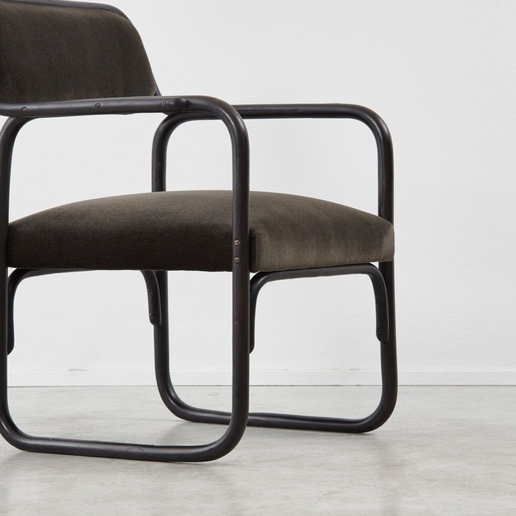 The A 60 series defied expectations with its materiality – its appearance convincingly resembling metal rather than bentwood. Only a year prior, the steel furniture company L. & C. Arnold showcased a near-identical design in tubular steel by architect Arthur Korn in their catalogue. This armchair is a rare specimen from the series, published in the Thonet-Mundus catalog in 1929.