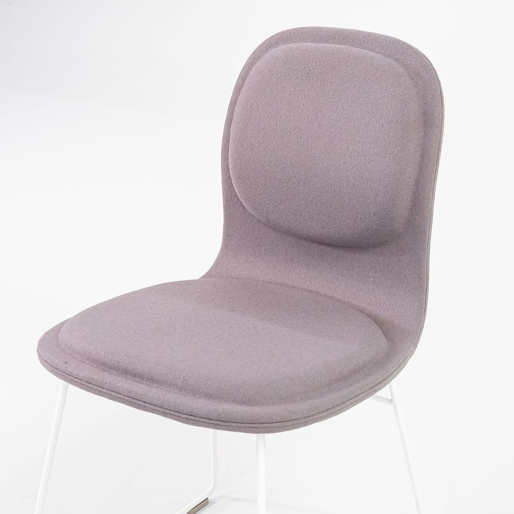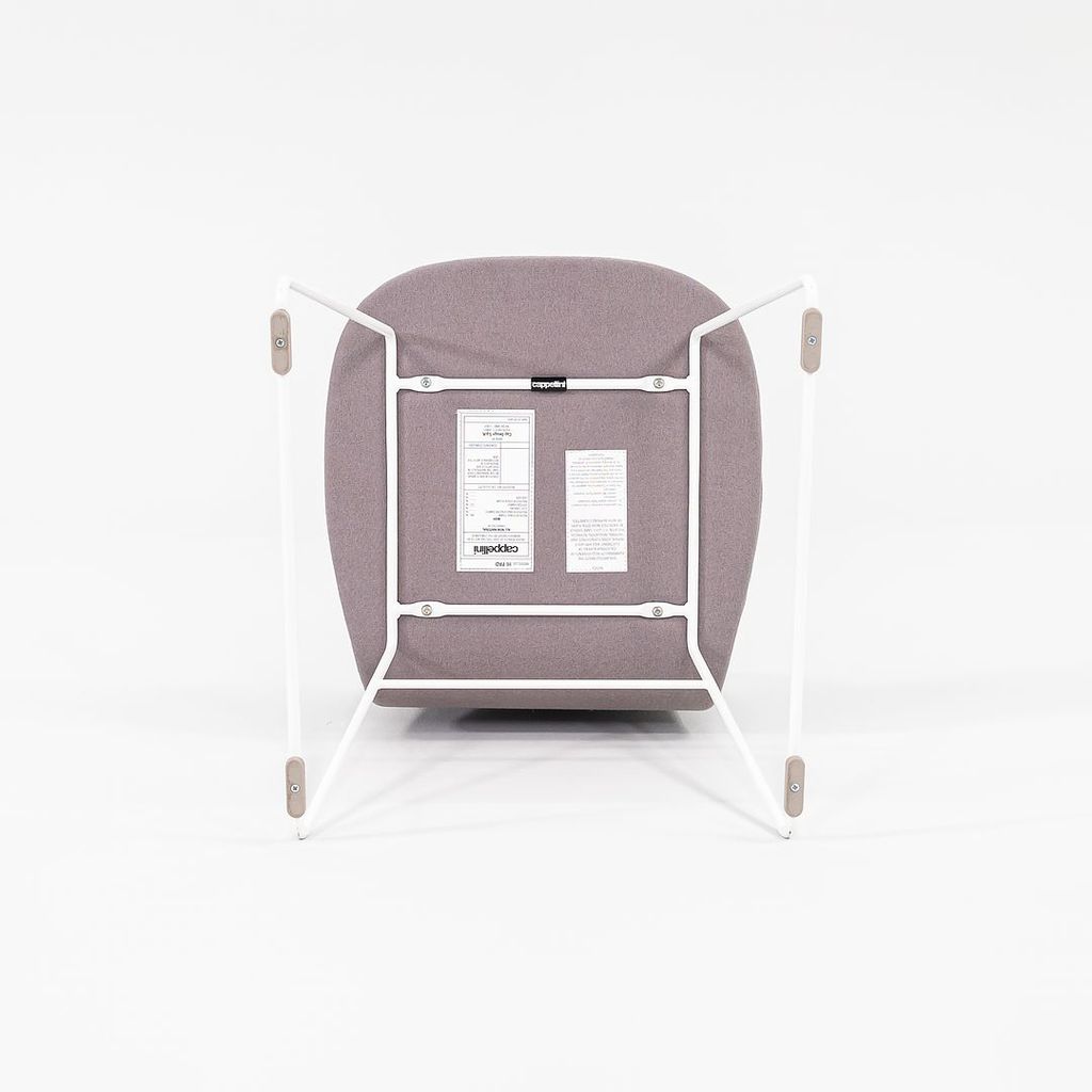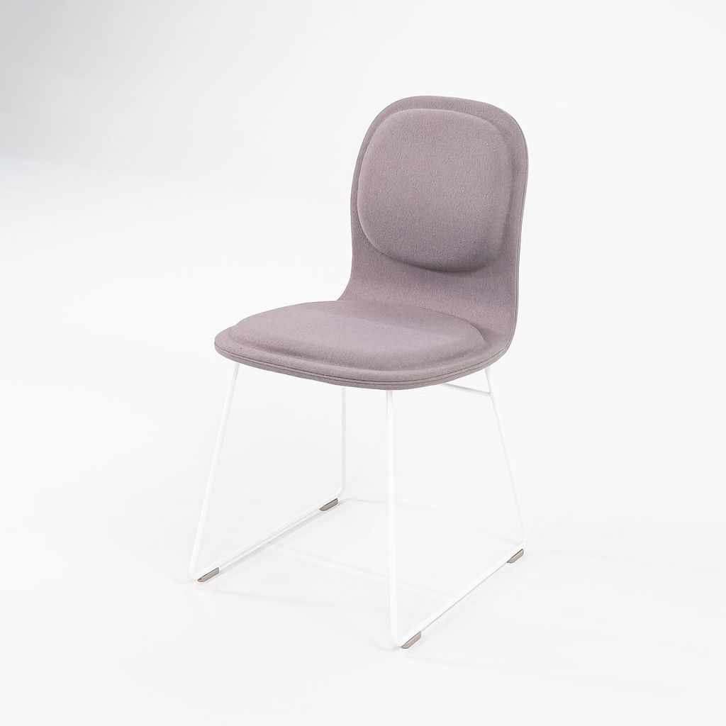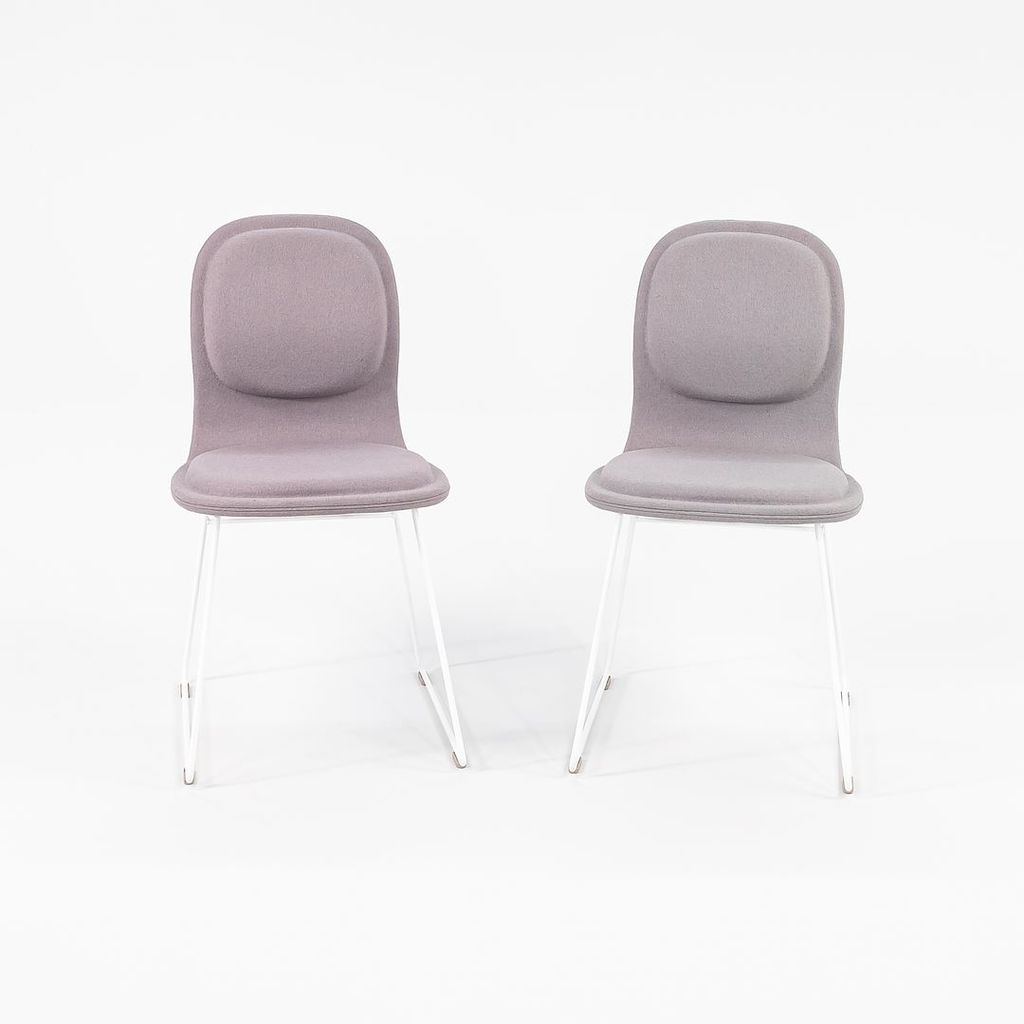 Listed for sale is a pair of Hi Pad dining chairs made with white stainless steel bases and grey fabric seats. The chairs were designed by Jasper Morrison and produced by Cappellini in Italy. They date to circa 2022 and are guaranteed as authentic. Condition is excellent. See photos. The fabric appears to be Hero 803 by Kvadrat. We have three other chairs available that match well also (those are sold individually and separately).