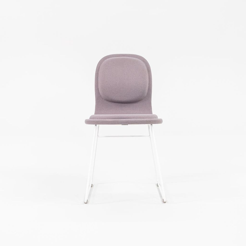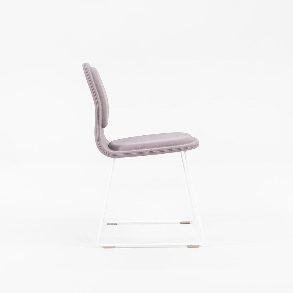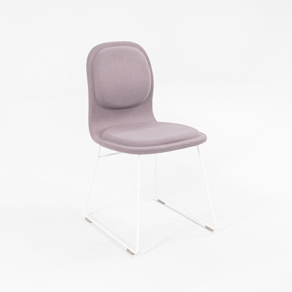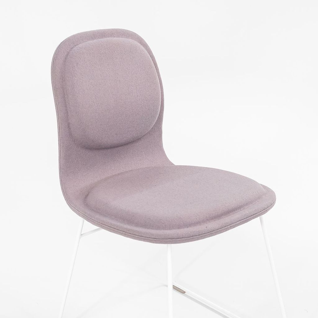 Listed for sale is a pair of Hi Pad dining chairs made with white stainless steel bases and grey fabric seats. The chairs were designed by Jasper Morrison and produced by Cappellini in Italy. They date to circa 2022 and are guaranteed as authentic. Condition is excellent. See photos. The fabric appears to be Hero 803 by Kvadrat. We have three other chairs available that match well also (those are sold individually and separately).