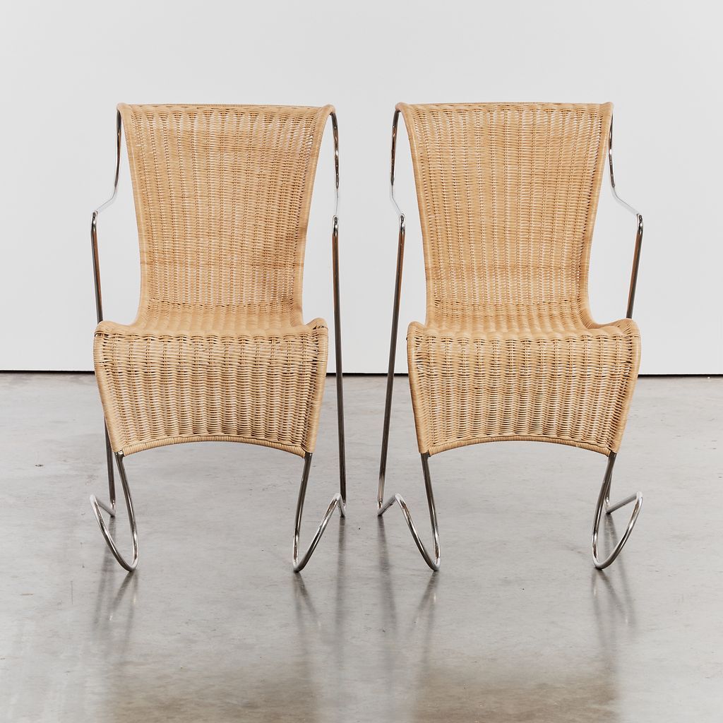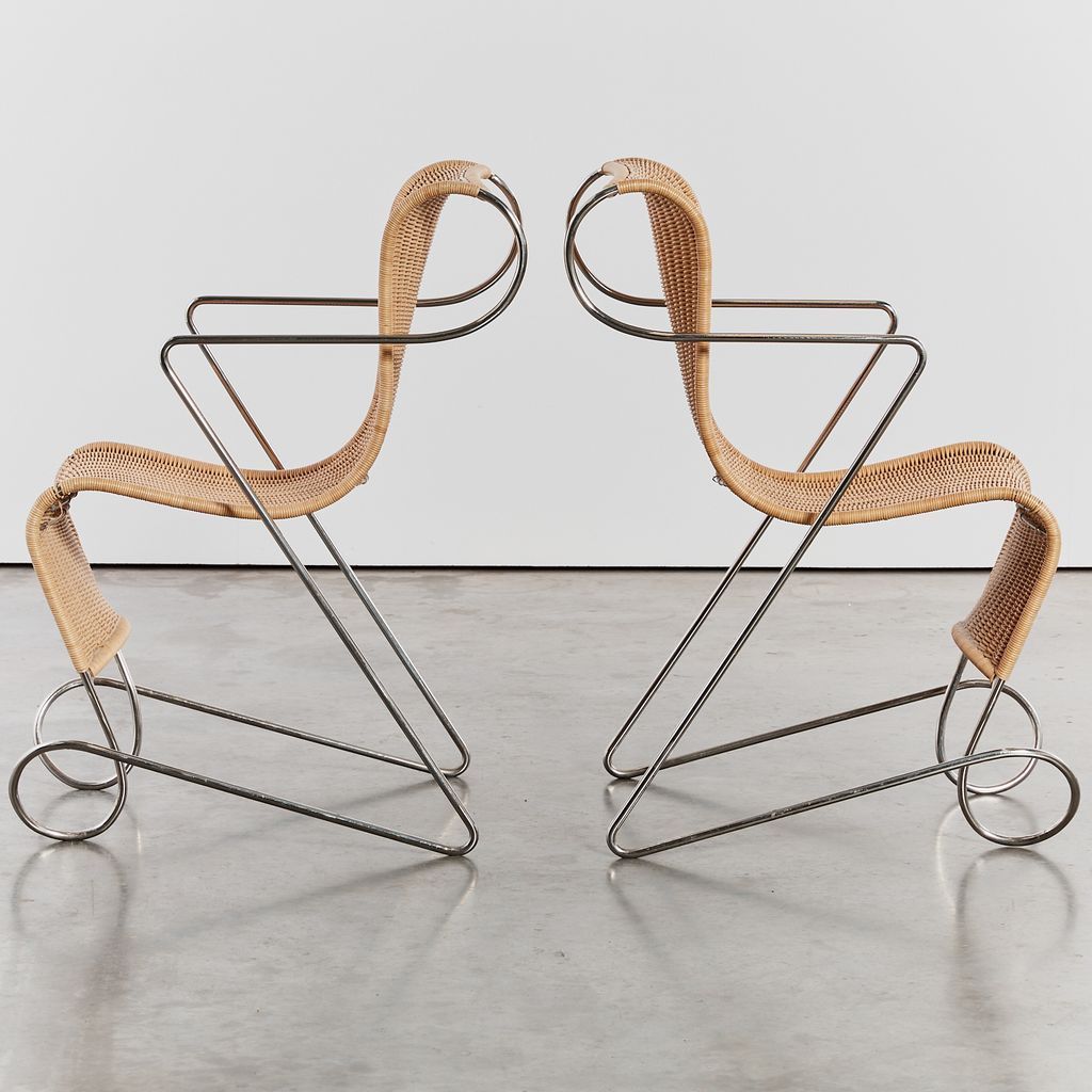 Pair of statement rattan and steel 'Zigo' chairs by Ron Arad, for the Italian manufacturer Driade. Priced as a pair.