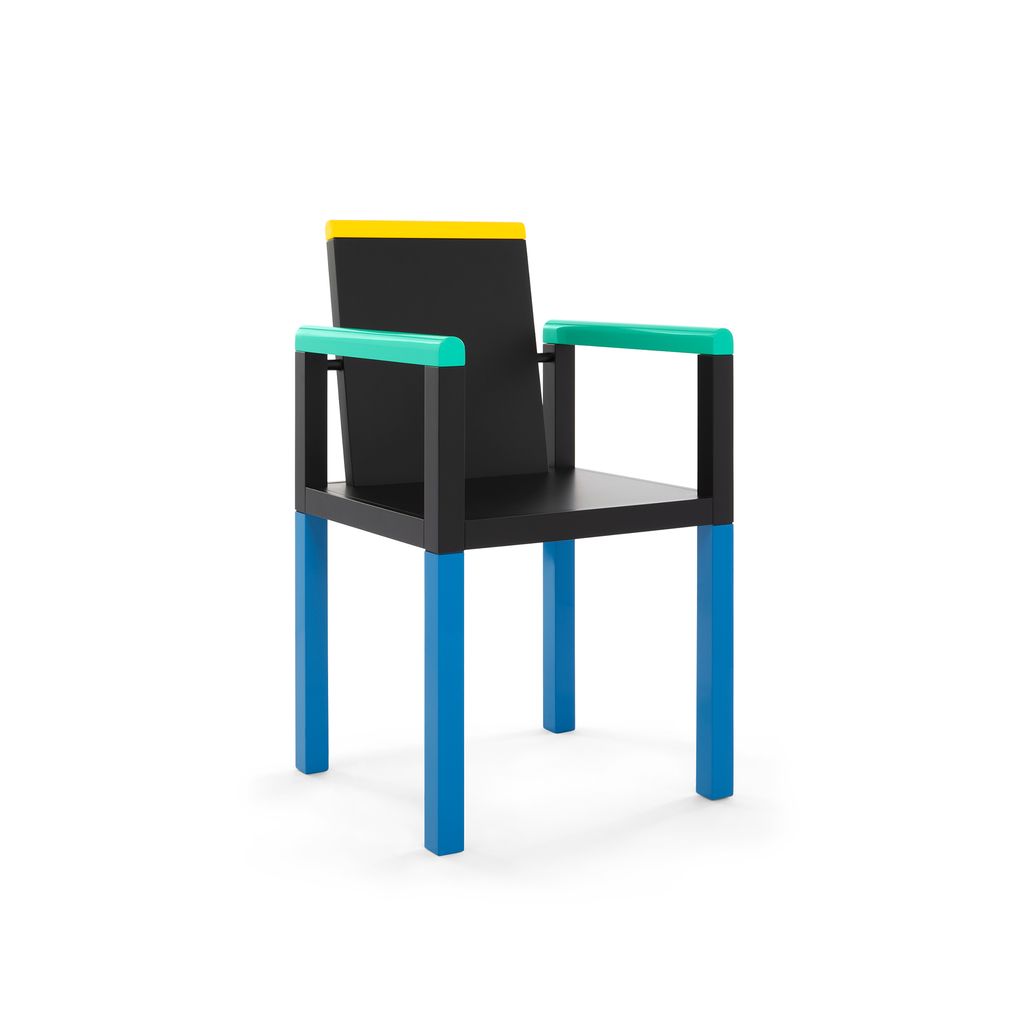 Created by George J. Sowden in 1983, the Palace chair reinterprets the rationalist forms of design, referencing the clean lines of Bauhaus while highlighting the structural details with bold colors.
