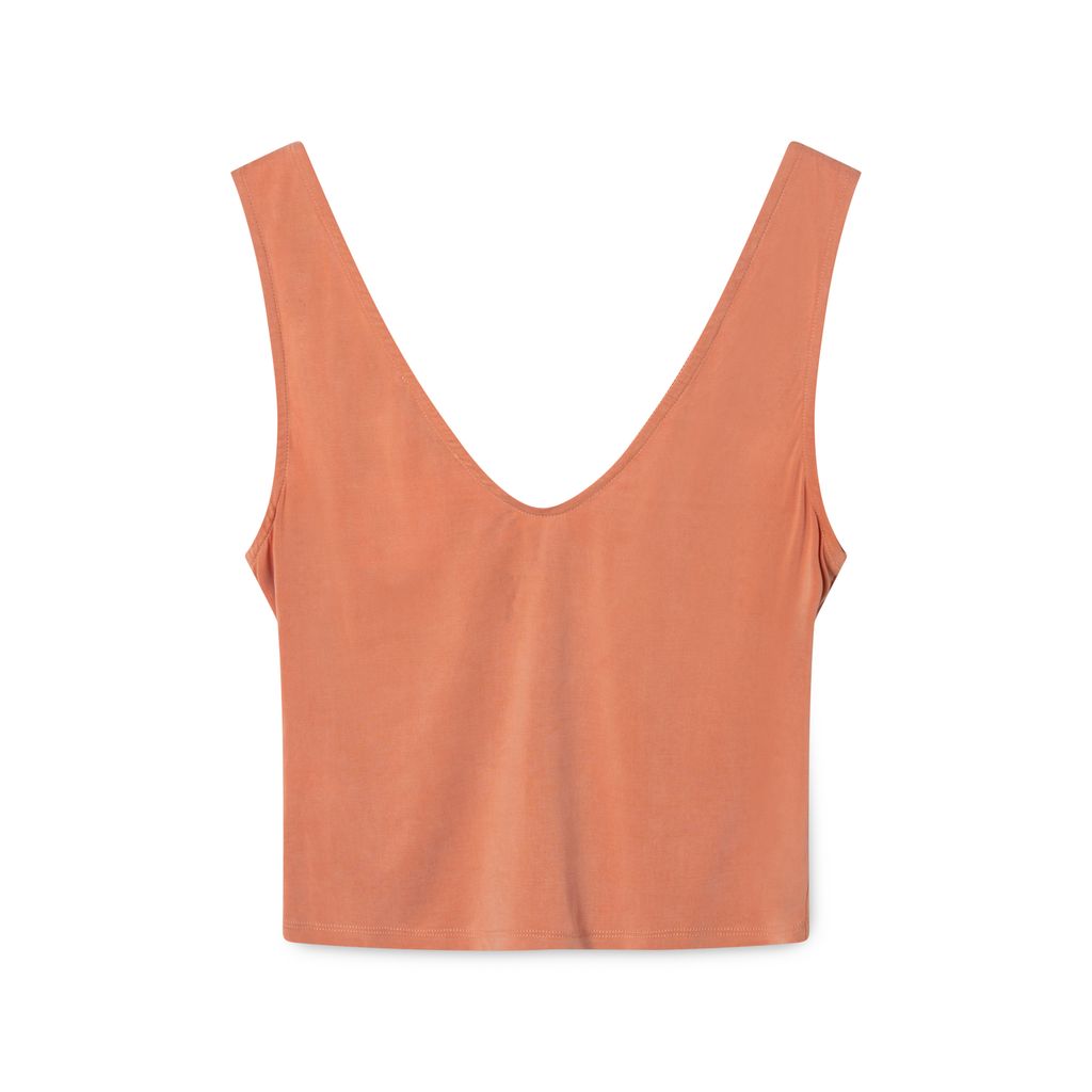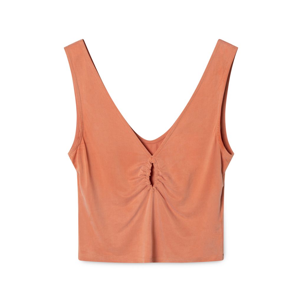 Paloma Wool Orange Tank features V-neck, cutout on front, and cropped fit. Paloma Wool Orange Pants features elastic waist, small cutout on waistline, and relaxed fit.