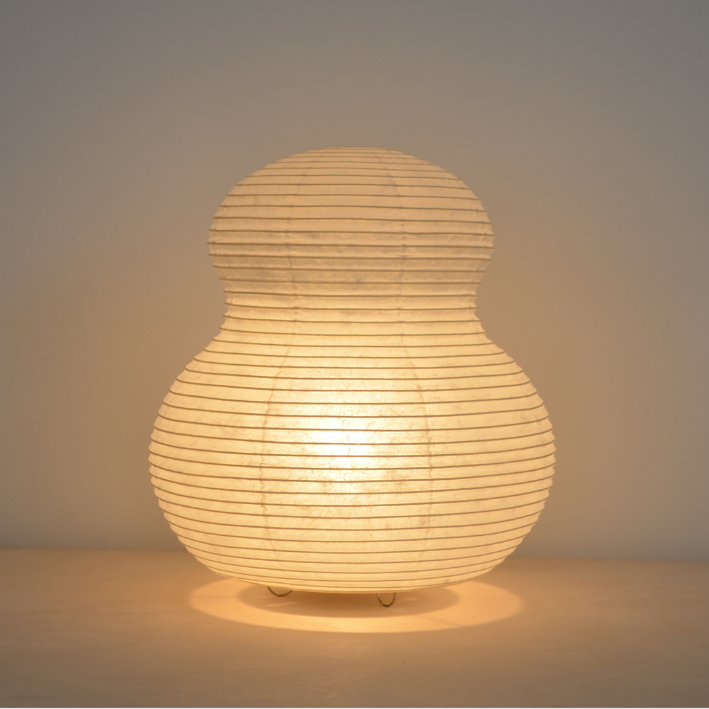 Handmade in the Gifu prefecture of Japan for 90 years, this collection of Washi table lights designed by Shigeru Uchida in 1990, speak softly with their halcyon shape and warm diffusion. The simplicity of their structure is characterized by a wire armature that dilates a continuous spiral of bamboo filament and rice paper. Asano lantern lamps are lovely in a group. Flat packed and gift boxed, the experience of taking an Asano light out of its box is like unfolding a precious silk.