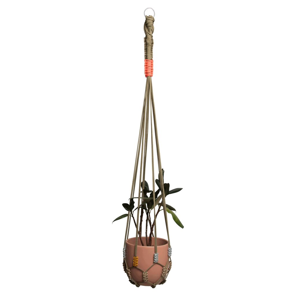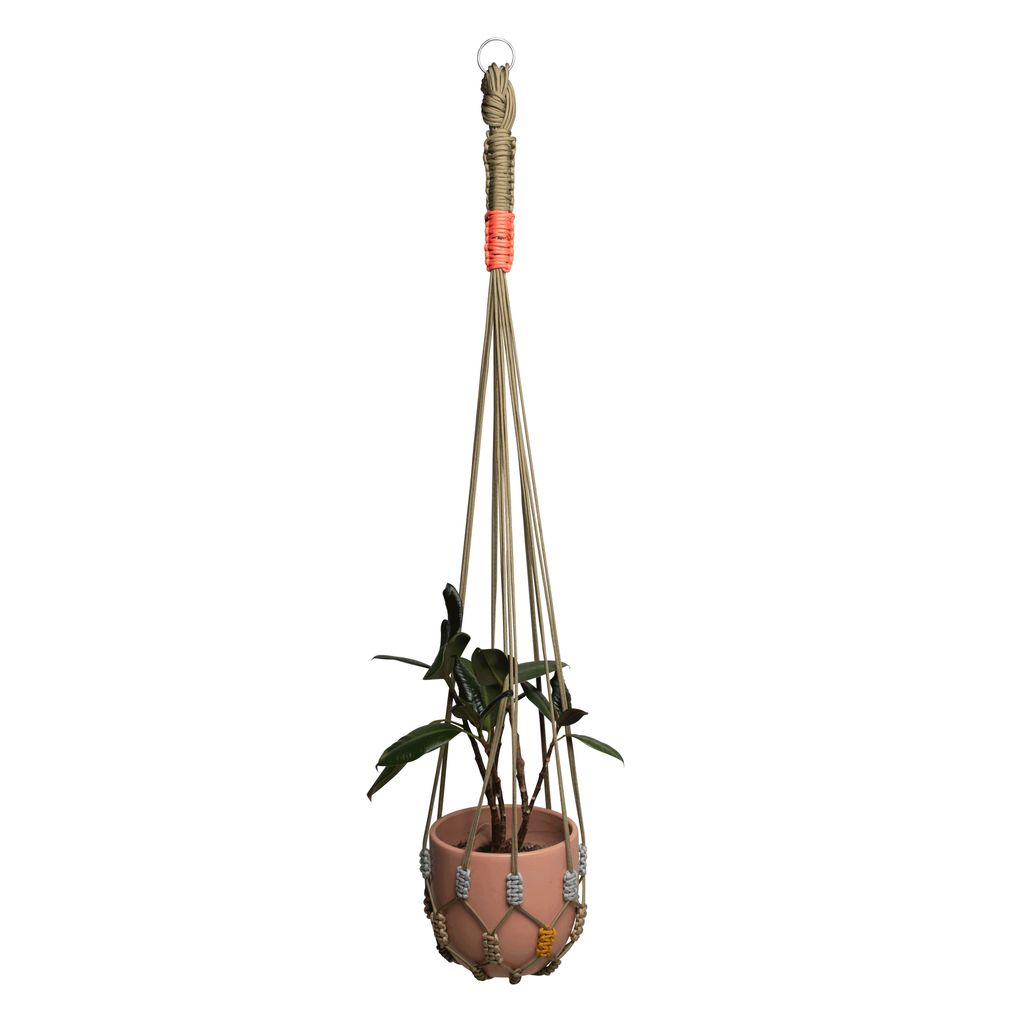 Earthly adventures-inspired vessel for indoor plants, handmade to elevate pots from wall hooks or ceilings. Max planter diameter of 8" recommended.
