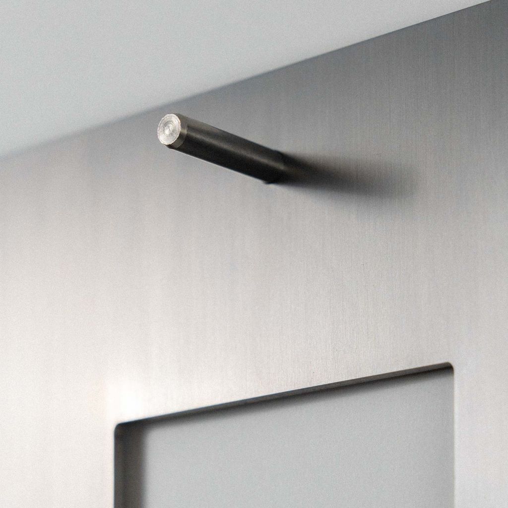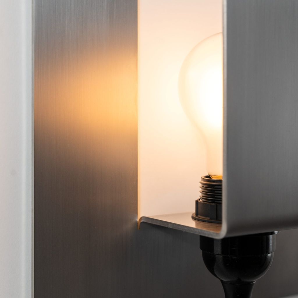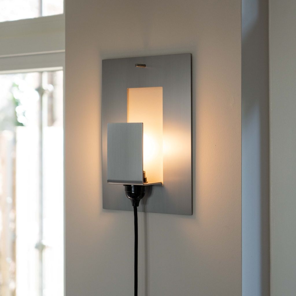 Passe-Partout is a minimalist wall lamp made from a single hand brushed stainless steel sheet, bent into carefully designed proportions. Each piece is individually numbered and crafted locally in small batches. Its soft ambient glow and sculptural form quietly transforms any space.