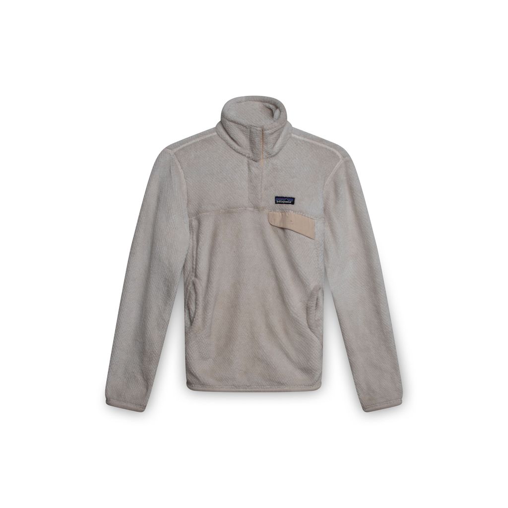 Patagonia re-tool snap-t fleece pullover features mock neck, 1/3 button snaps, three front pockets, mock neck, and logo at chest.