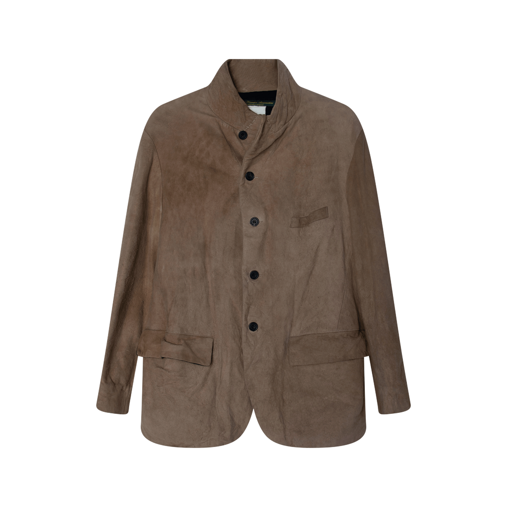Paul Harnden Shoemakers Brown Suede Blazer features front button closure, 2 front pockets, and chest welt pocket.