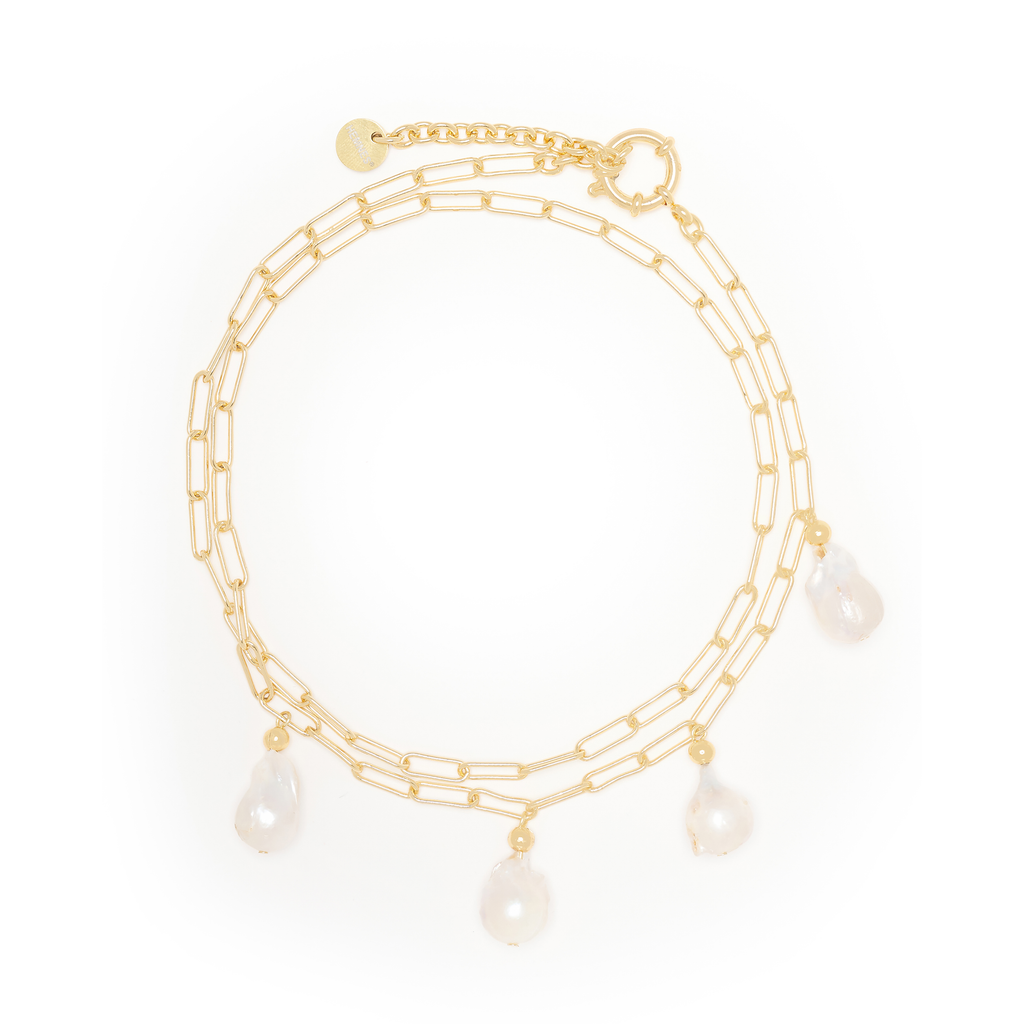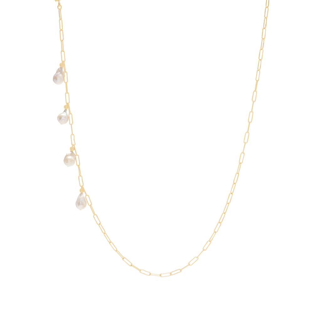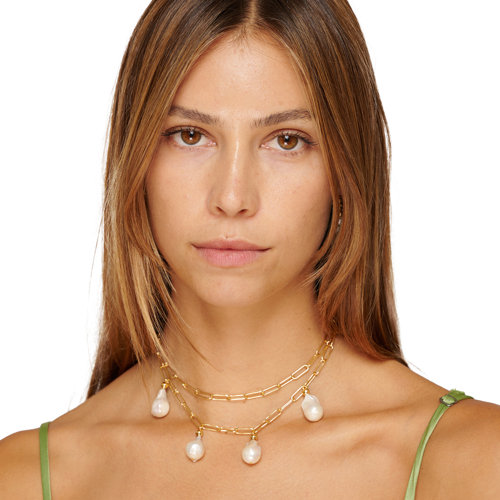Handcrafted necklace in 18k gold-plated stainless steel. Doubles as a body chain. Spring-ring fastening and 3" extension chain for adjustable sizing. Approx. 28"-31." Made in Los Angeles, CA.