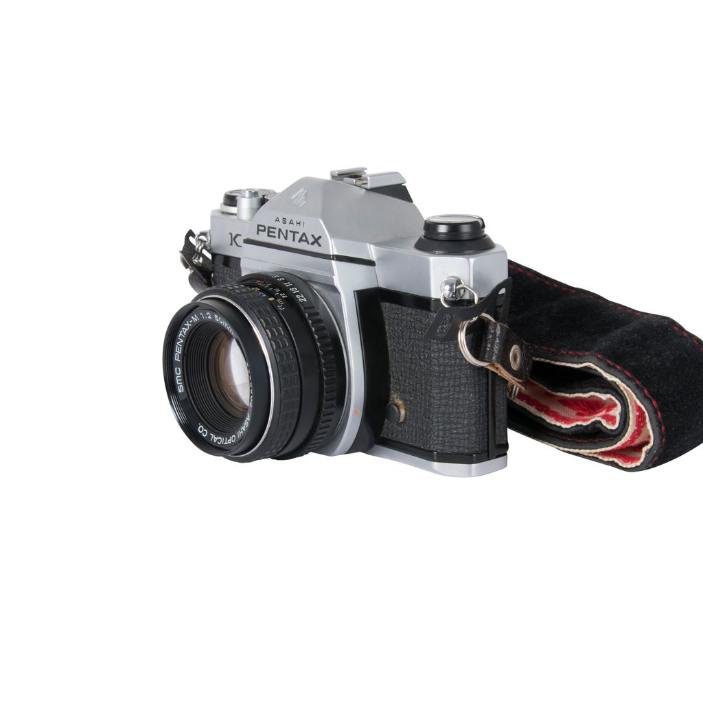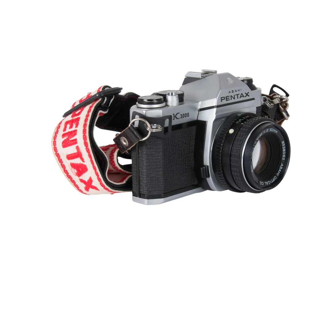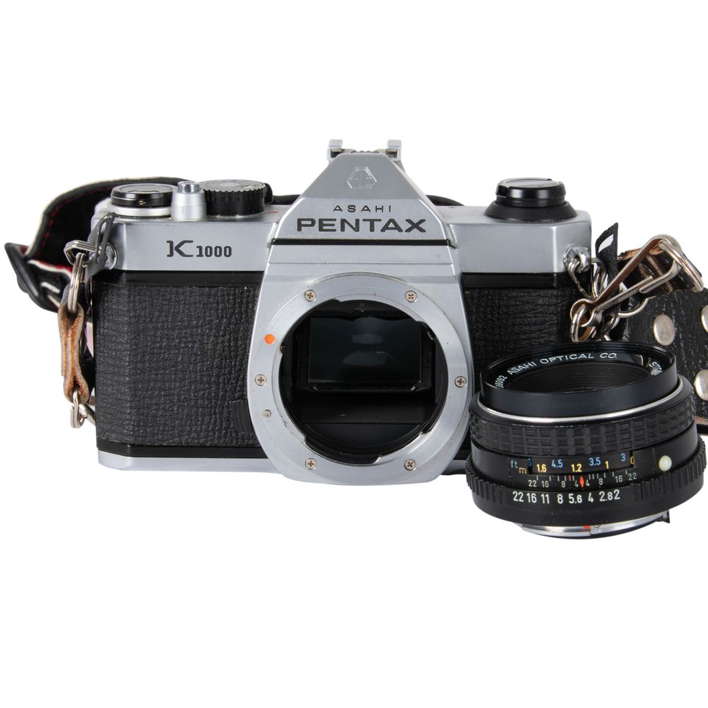 The Pentax K1000 is an interchangeable lens, 35 mm film, single-lens reflex camera, manufactured by Asahi Optical Co., Ltd. from 1976 to 1997, originally in Japan. The K1000's extraordinary longevity makes it a historically significant camera. Comes with a Pentax camera strap. In excellent condition, no lens cap.