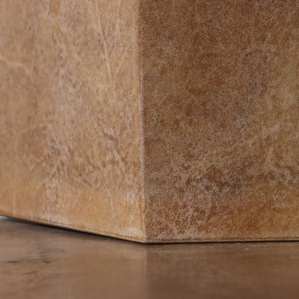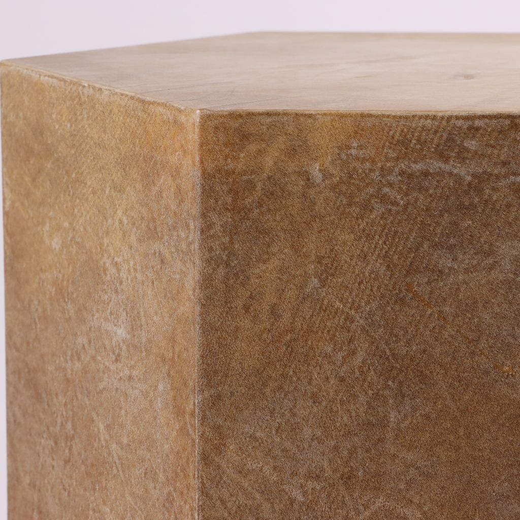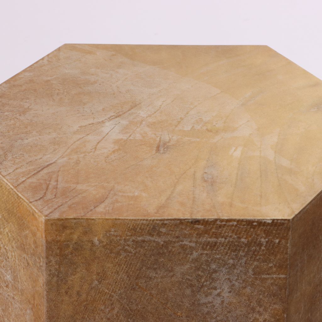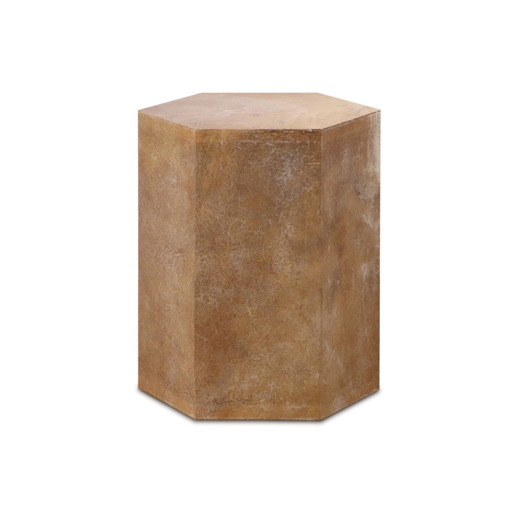 Our line of Hex tables are understated geometric forms that can be used alone or grouped together to form larger modular pieces. The Pergamino Hex employs sustainably sourced goatskin from Argentina whose natural coloration and texture complement the piece's minimal form.